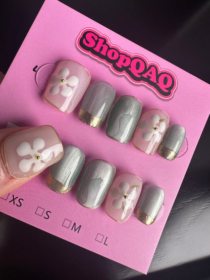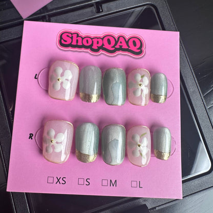 #ShopQAQ #PressOnNails #HandPaintedNails #SummerNails #LongIslandIcedTeaNails #GreenNails #SunglassesNails #PinkLightTherapyNails