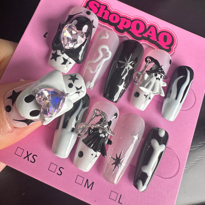 Product Overview: Step into a world of whimsical charm with our Original Hand-Painted Ghost Nail Art. These super cute press-on nails are designed for those who adore a blend of sweetness and edginess, embodying a unique style that perfectly captures the playful spirit of a sweet and cool girl.
