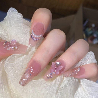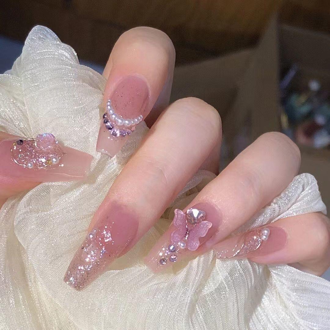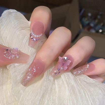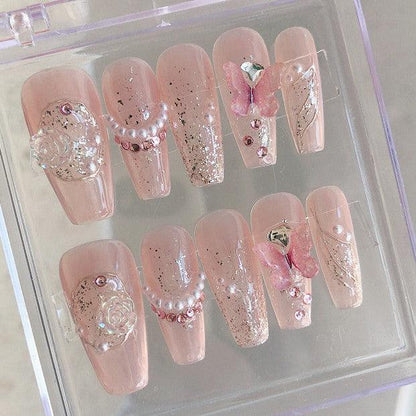 Add a touch of elegance to your nails with these Handmade Fake Nails in a beautiful pink butterfly design. Perfect for any occasion, these nails are sure to turn heads with their unique and eye-catching style. Handcrafted with care, these fake nails are easy to apply and provide a long-lasting and durable finish.