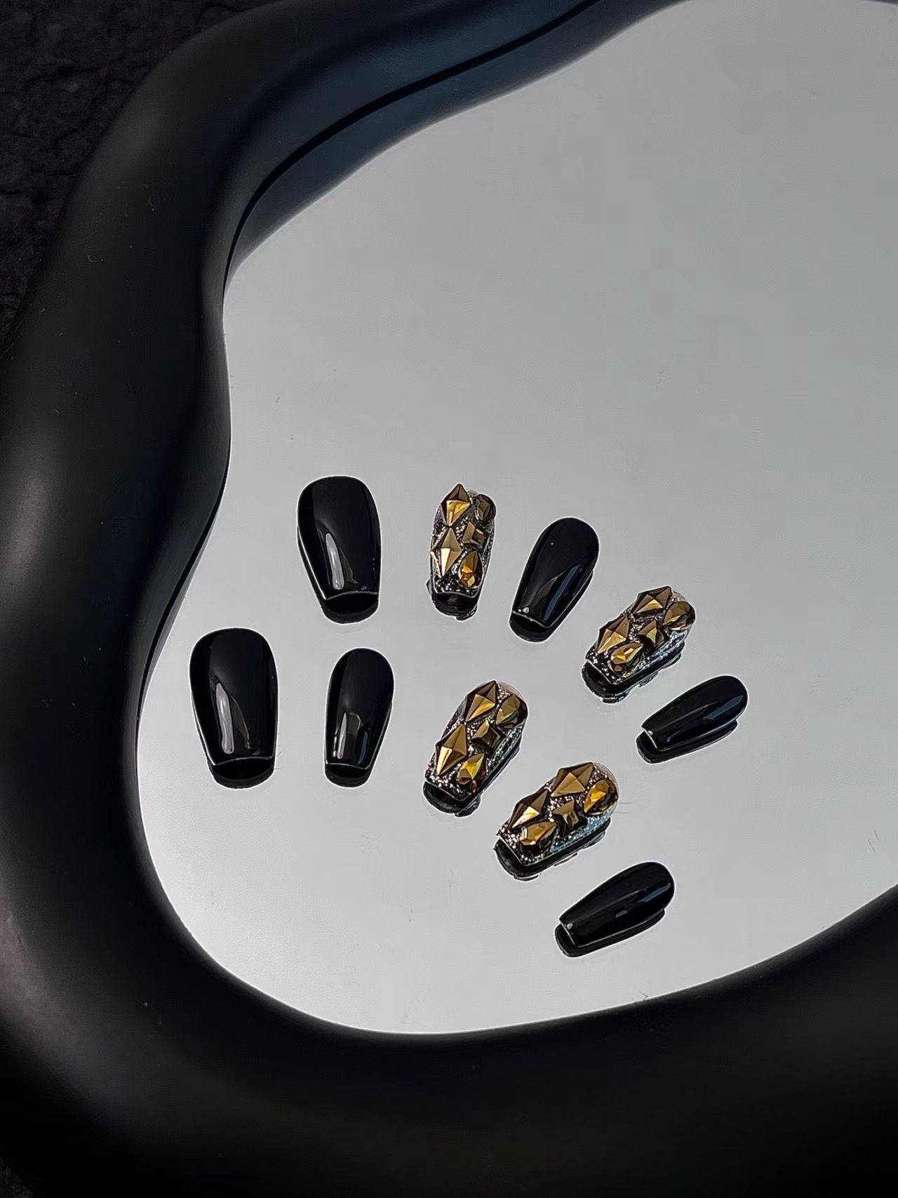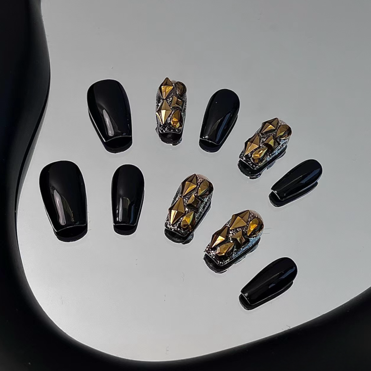 Step into the spotlight with our sensational wearable armor, featuring a sleek black base adorned with radiant yellow sparkling gems, creating a mesmerizing sunburst effect. This unique piece is a celebration of bold elegance, designed to illuminate your style and captivate onlookers.