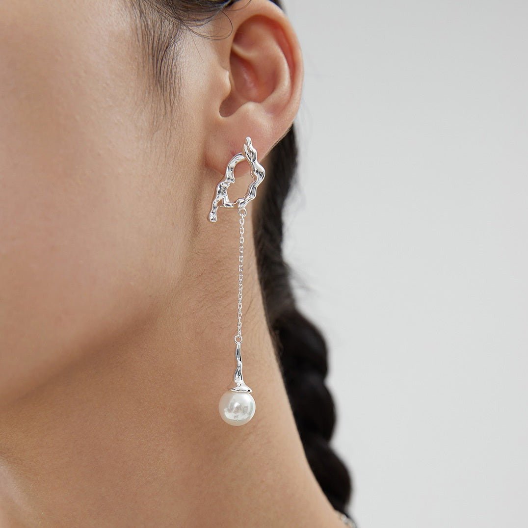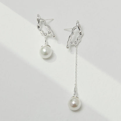 10MM Round Pearl Asymmetric Long Earrings
