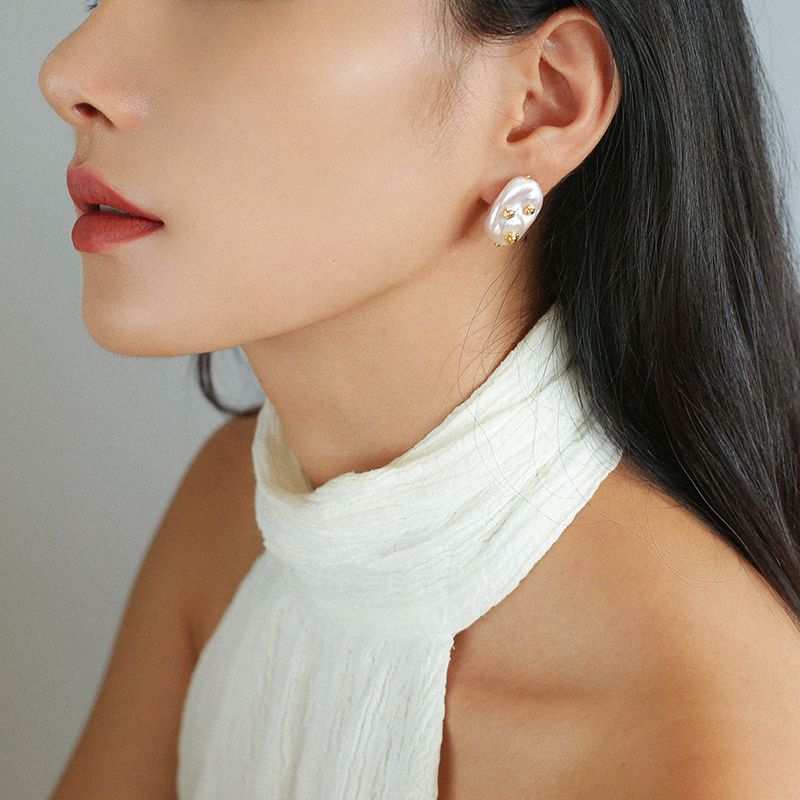 Introducing a pair of Baroque earrings with a story to tell. Each piece is a testament to the beauty of irregular, naturally formed shapes and the unique patterns that nature weaves. These pearls hold within them an artistic essence that captures the imagination.