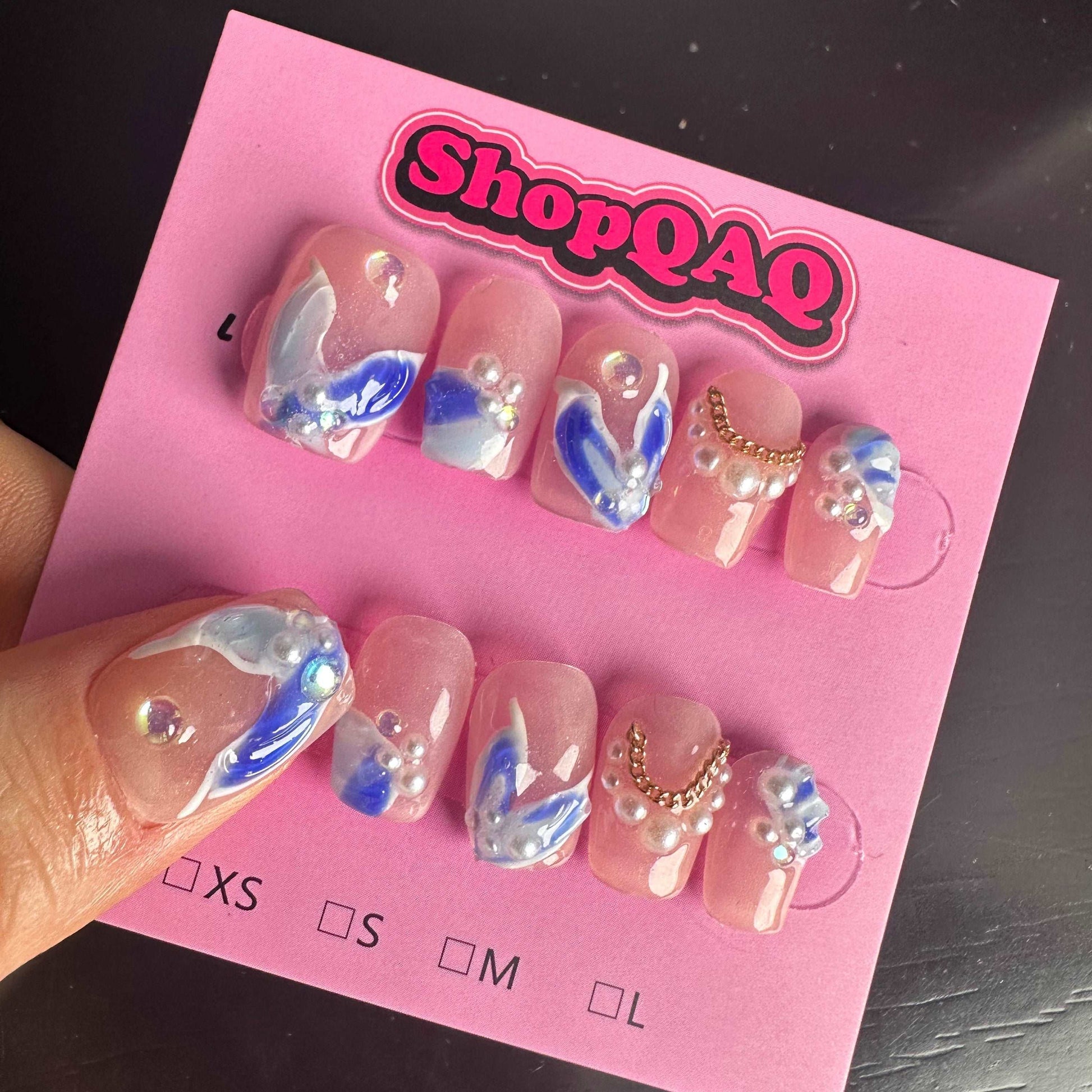 Dive into a world of enchantment with our "Blue Mermaid Tail" Handcrafted Press-On Nails. Featuring a mesmerizing blue mermaid tail design, these high-end gel nails exude a fairy-tale charm and sophisticated elegance. Perfect for adding a touch of magic and sophistication to your look, these nails are handcrafted to ensure a stunning, radiant finish.