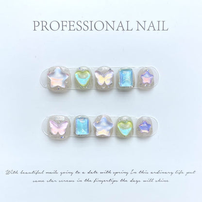 Upgrade your child's nail game with our "Children's Candy-Colored Aurora Mocha Diamond" Handcrafted Nail Art collection today. Whether it's for a special occasion or everyday wear, these nails are sure to add a touch of magic to your child's look!