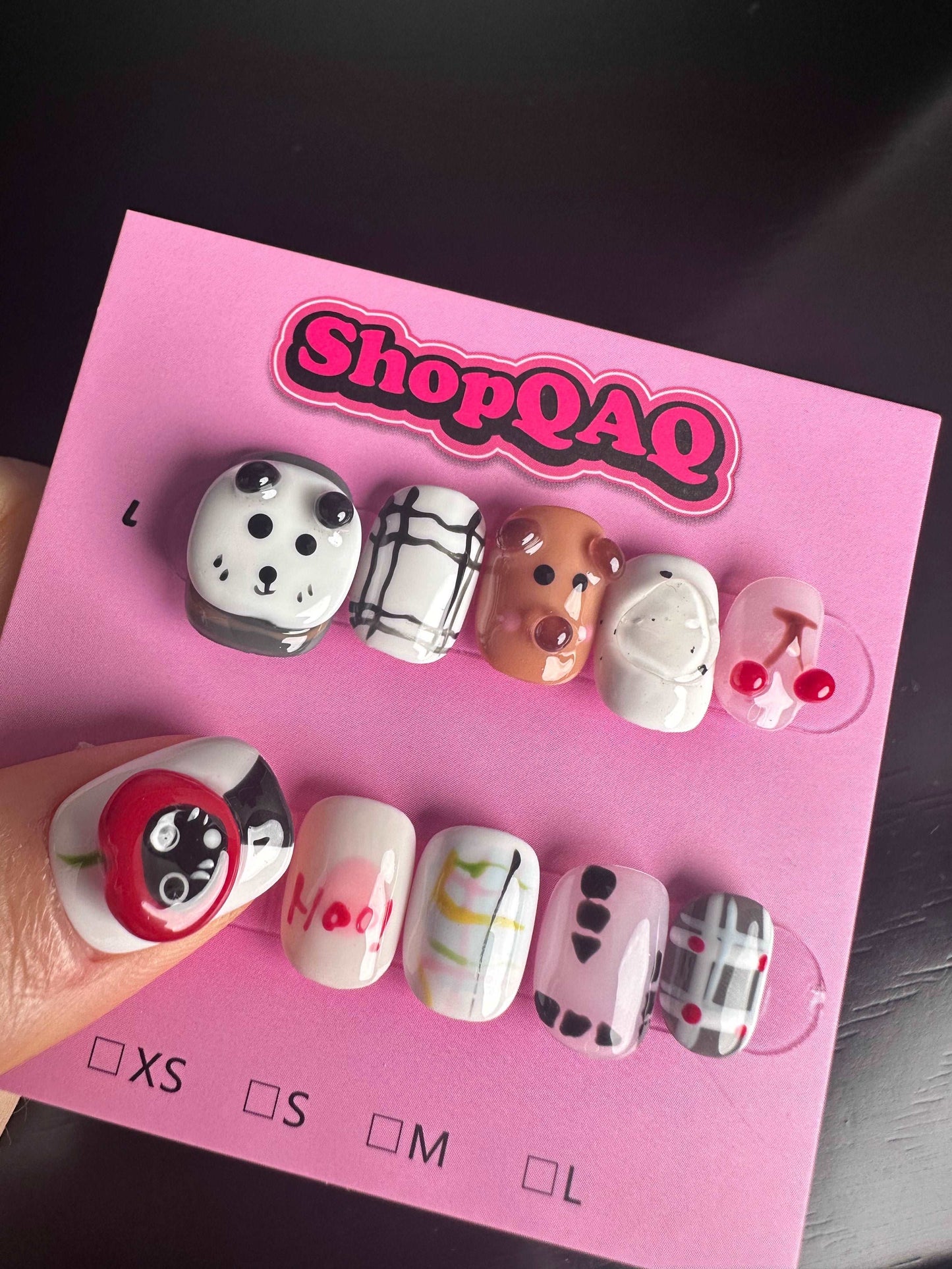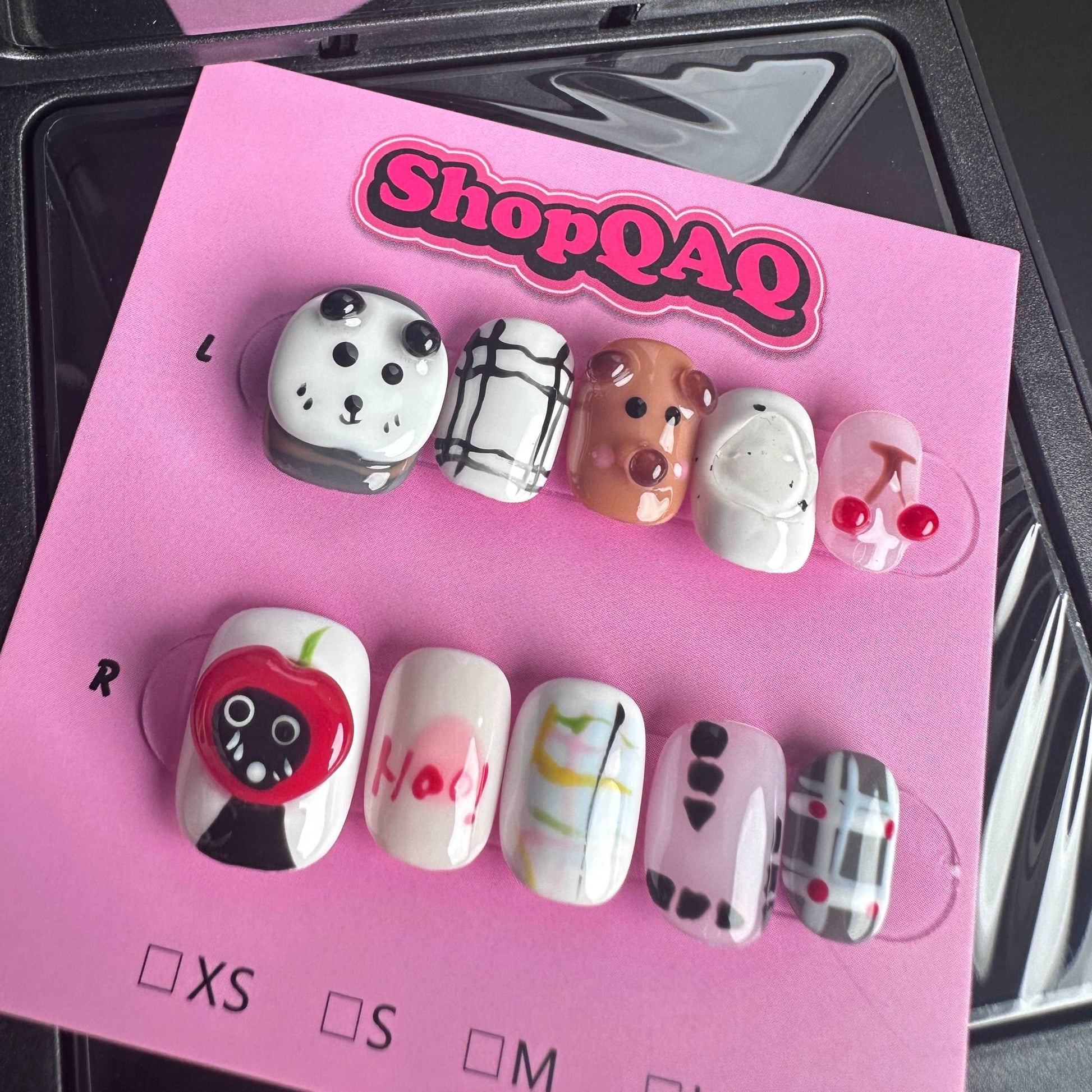 Discover the charm of unique nail art with ShopQAQ's Custom Handcrafted 3D Cute Hand-Painted Apple Nails. Inspired by Japanese and Korean aesthetics, and infused with trendy Thai INS style, these nails are perfect for those who love to stand out with distinctive and playful designs.