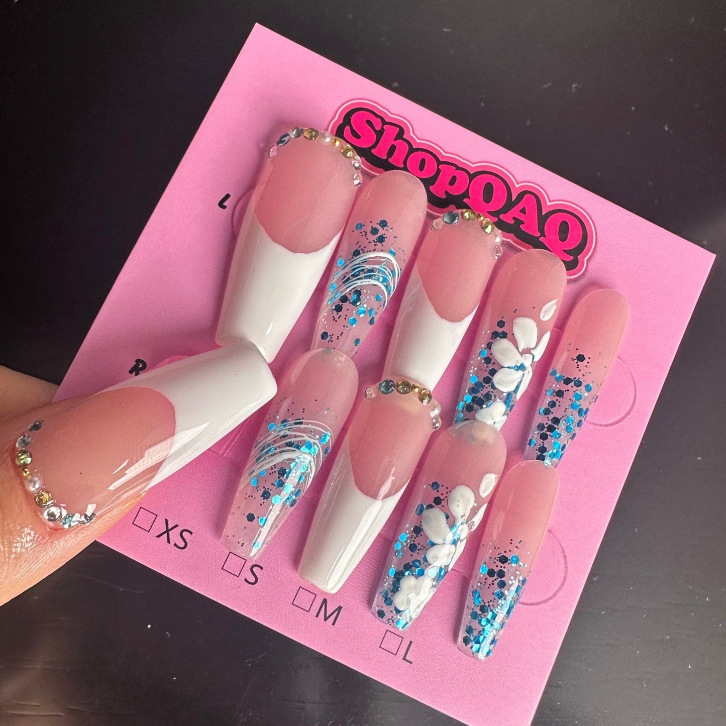 - Hand-Painted Artistry: Each nail features meticulously hand-painted floral designs, offering a one-of-a-kind artistic touch.