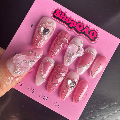 Honey Snow | Handcrafted Press-On Nails – Sweet Heart Design, Trendy and Durable, Easy-to-Wear, Removable