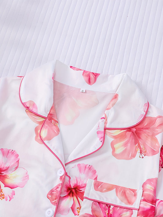 Pink floral satin pajama set