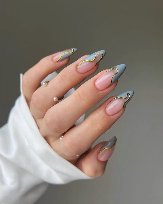 【Night & France】Handcrafted Custom Almond French Press-On Nails – Instagram-Ready Luxury