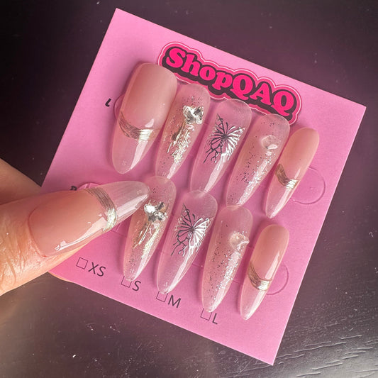 Starlight Cat Eye" Handcrafted Translucent Cat Eye French Press-On Nails - Baroque Starburst Butterfly Glamour