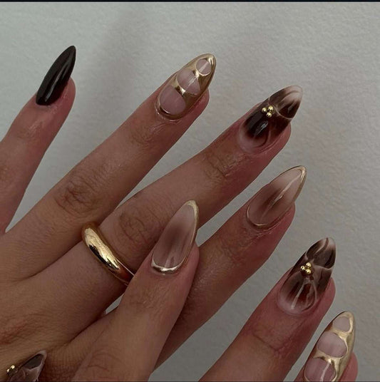 2024 Almond-Shaped Brown Autumn Element Press-On Nails