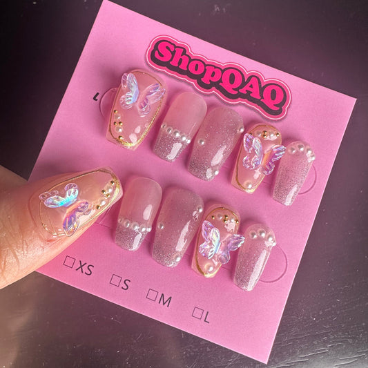 Polka Dot French Butterfly Spring/Summer Evening Luxury Press-On Nails