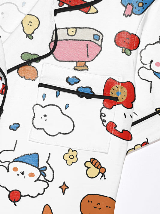 White Cow-Print Booties Short Sleeve Satin-Look Pajama Set