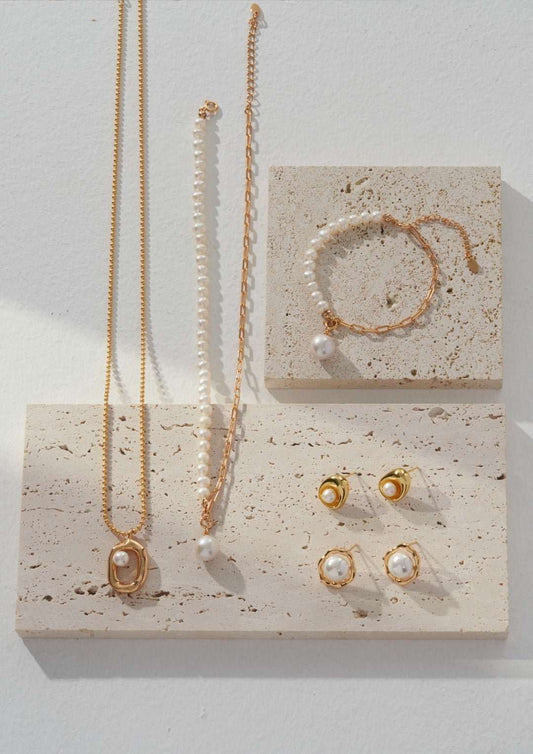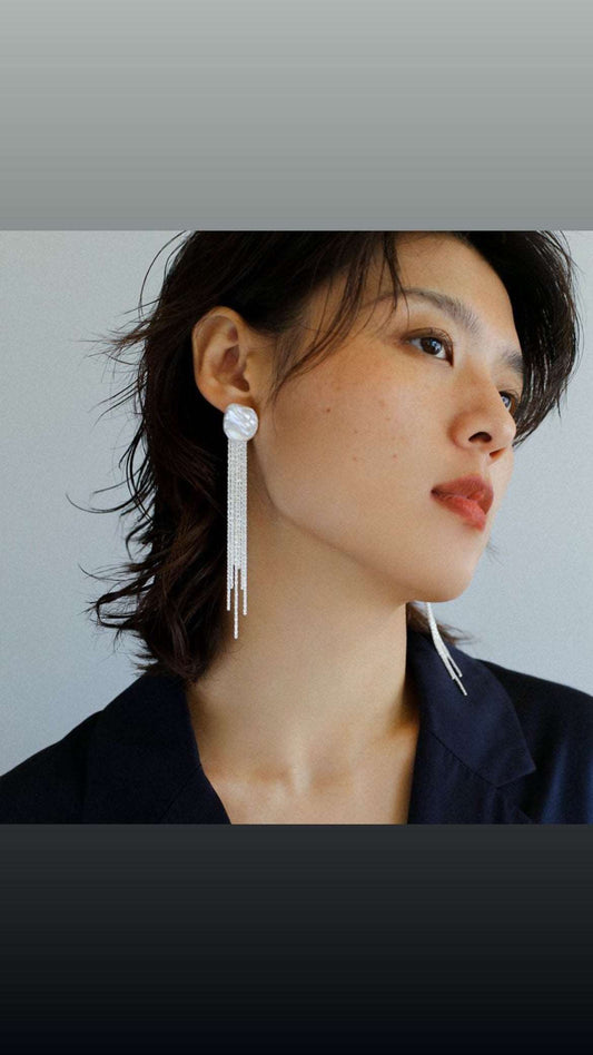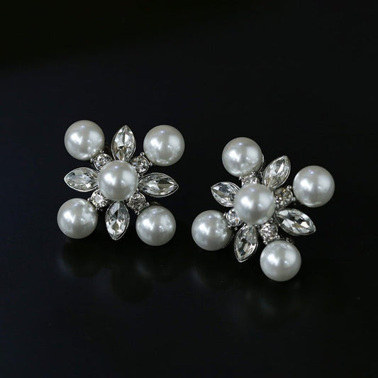 Asymmetrical Textured Pearl Earrings with Zircon Accents