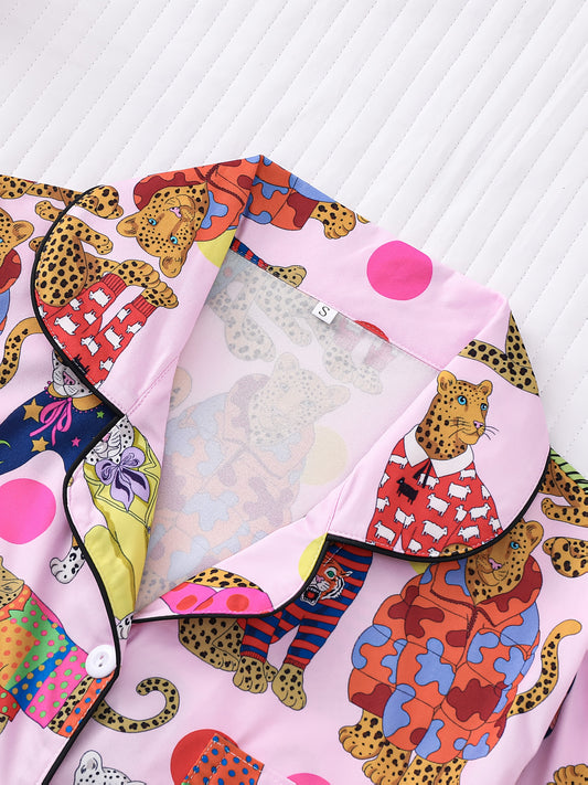 Blush Pop Leopard-Print Satin-Look PJ Set