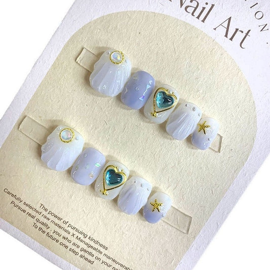 Ocean Blue Handcrafted Custom Almond French-style Wearable Nails