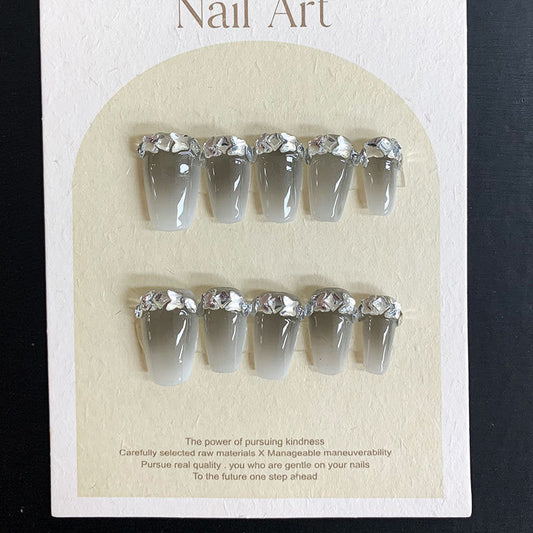 Minimalist Silver Edged French Manicure