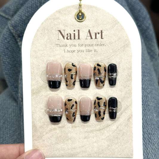 Cherry Leopard French Tip 3D Almond-Shaped Handcrafted Press-On Nails