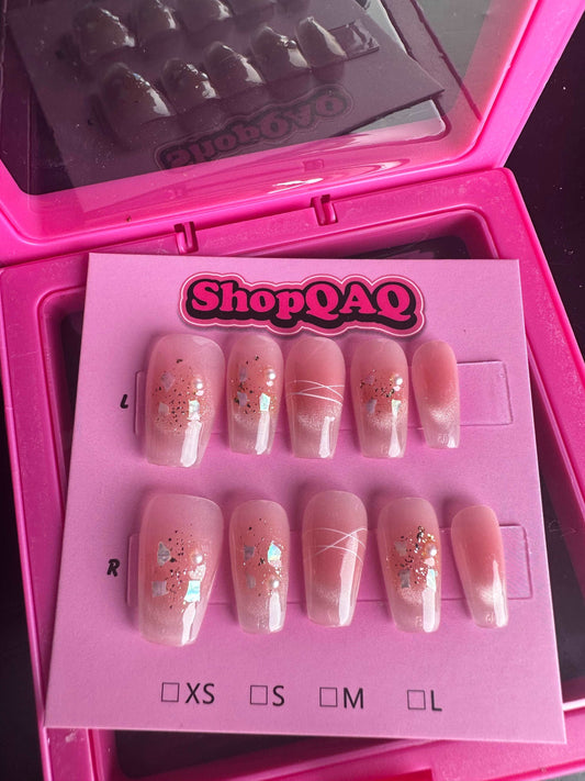 Cat Eye French Trapezoid Shell Pearl Blush Handcrafted Press-On Nails