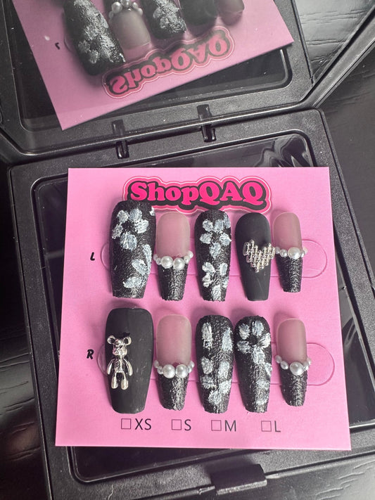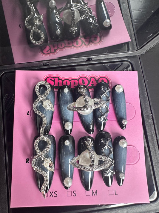 Dark Glory | Handcrafted Press-On Nails – Dark Gradient with Edgy Pendant Details