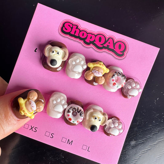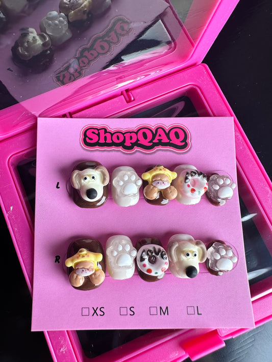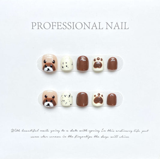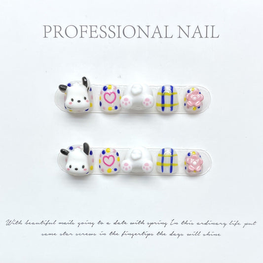 Handcrafted Cartoon Puppy Press-On Nails - Cute & Simple Ultra-Short Removable Nail Art for Students