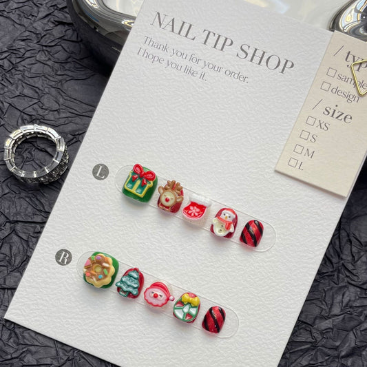Kids' Christmas Handcrafted Press-On Nails - Cute Cartoon Nail Art