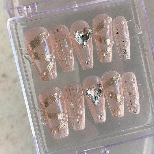 Muse-inspired Pink Water Wave Pearl Wearable Nails 2024