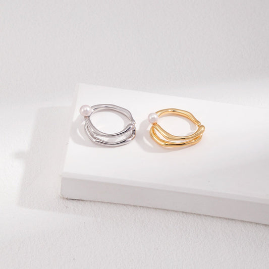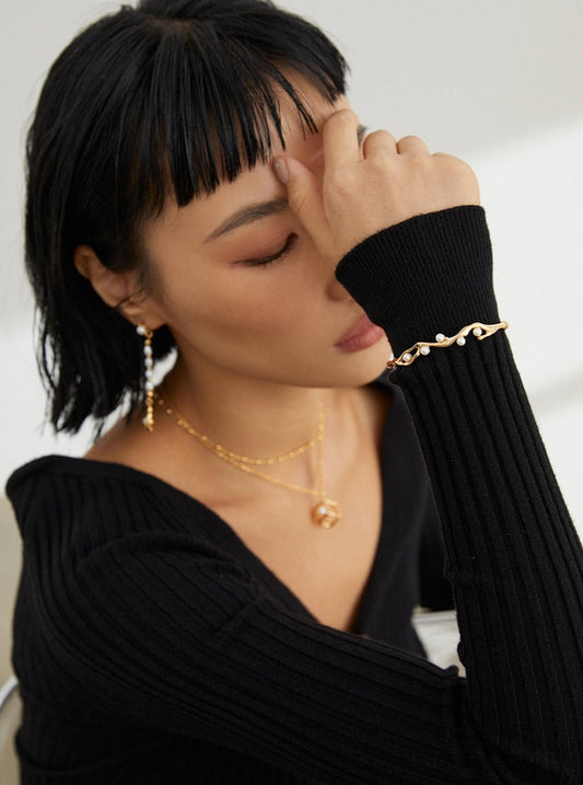 Effortlessly Stylish: Asymmetrical Metal and Pearl Earrings