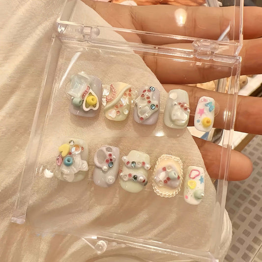 Muse-inspired Pink Water Wave Pearl Wearable Nails 2024