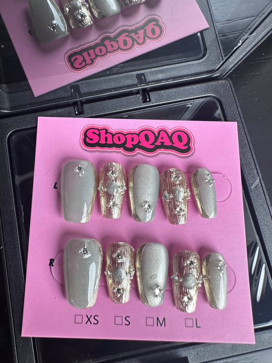 Silver Wing Maiden | Bucciarati Glass Bead Cat Eye Metallic Bad Girl Style Mechanical Press-On Gel Nails"