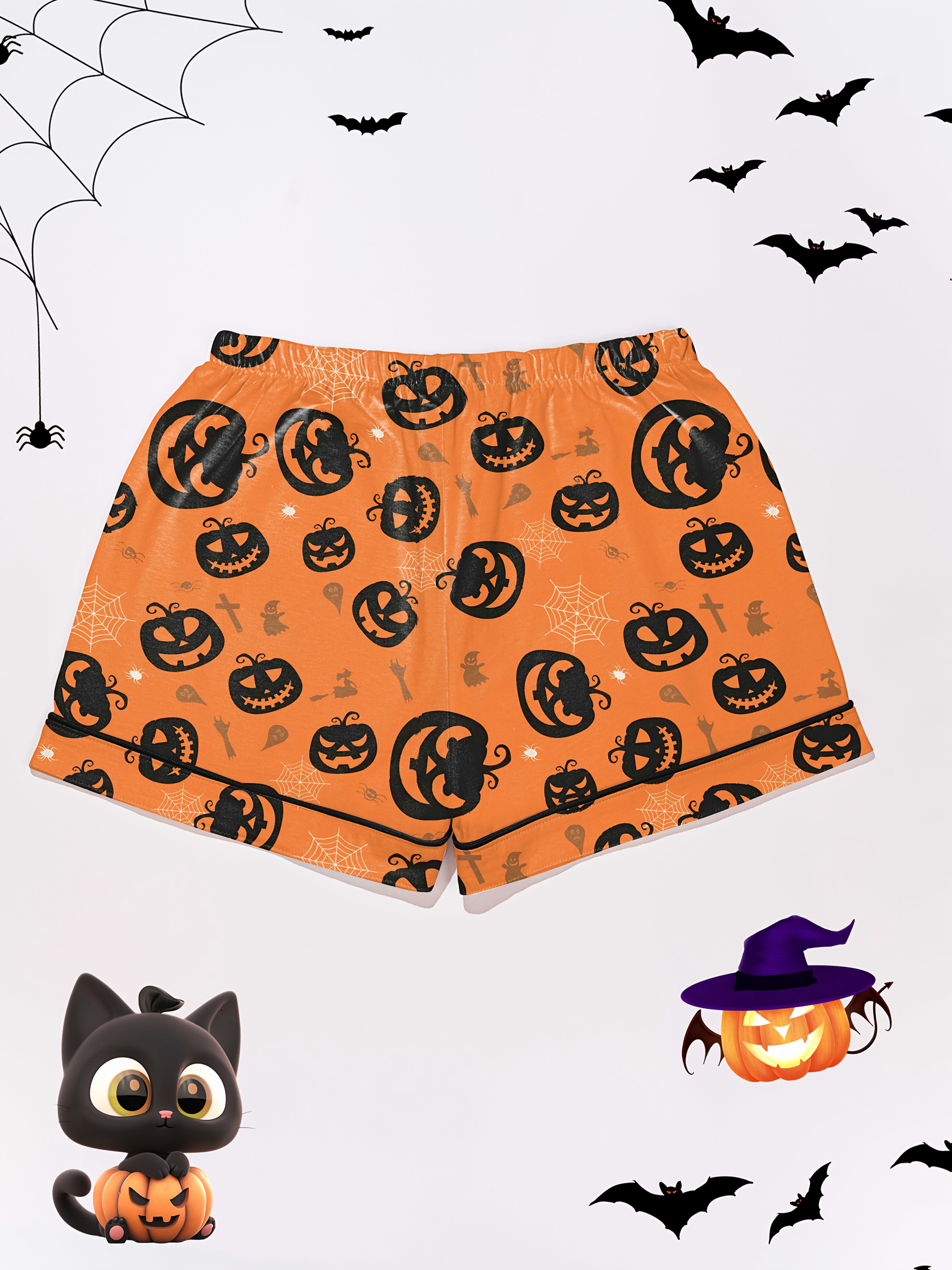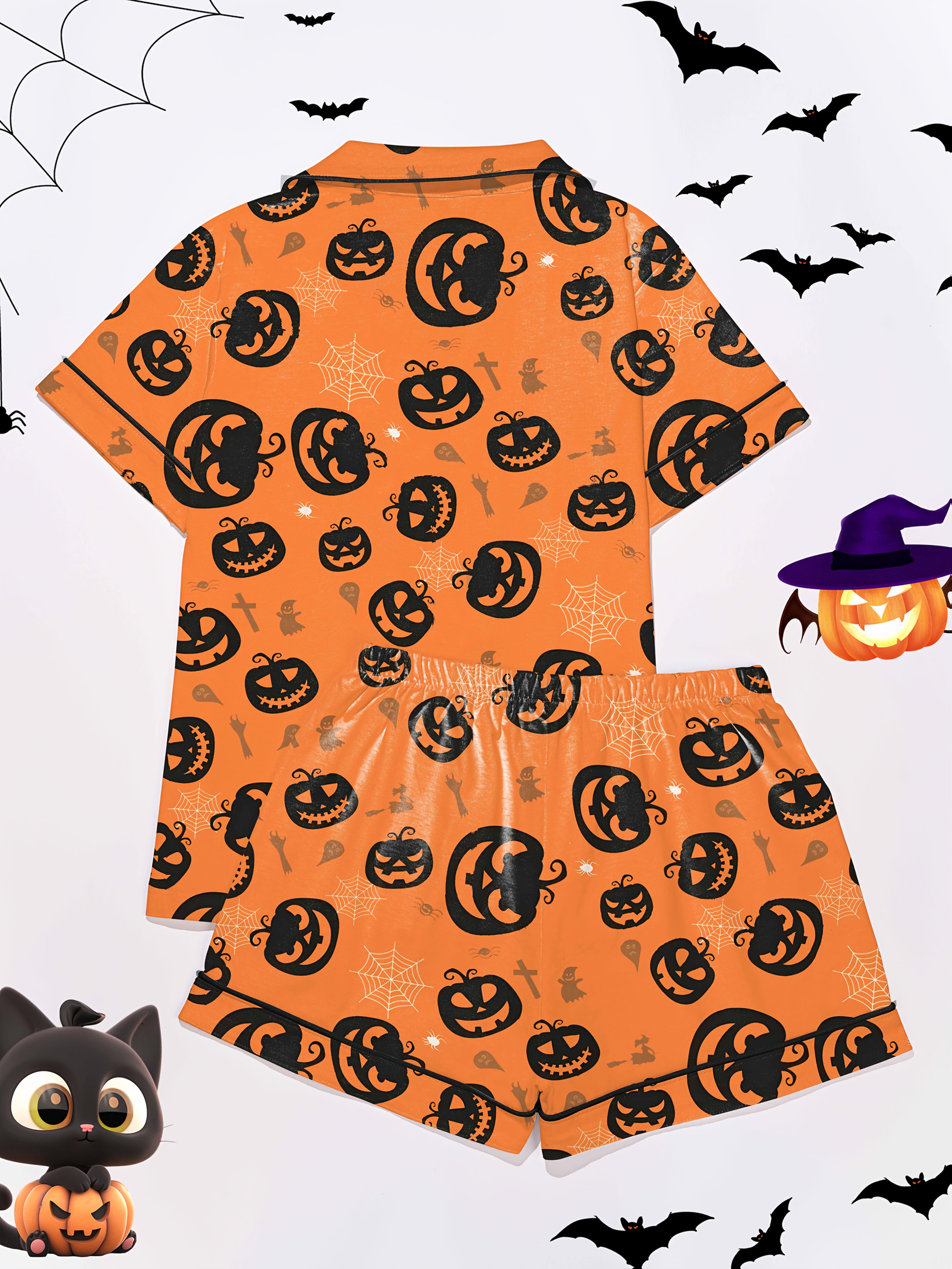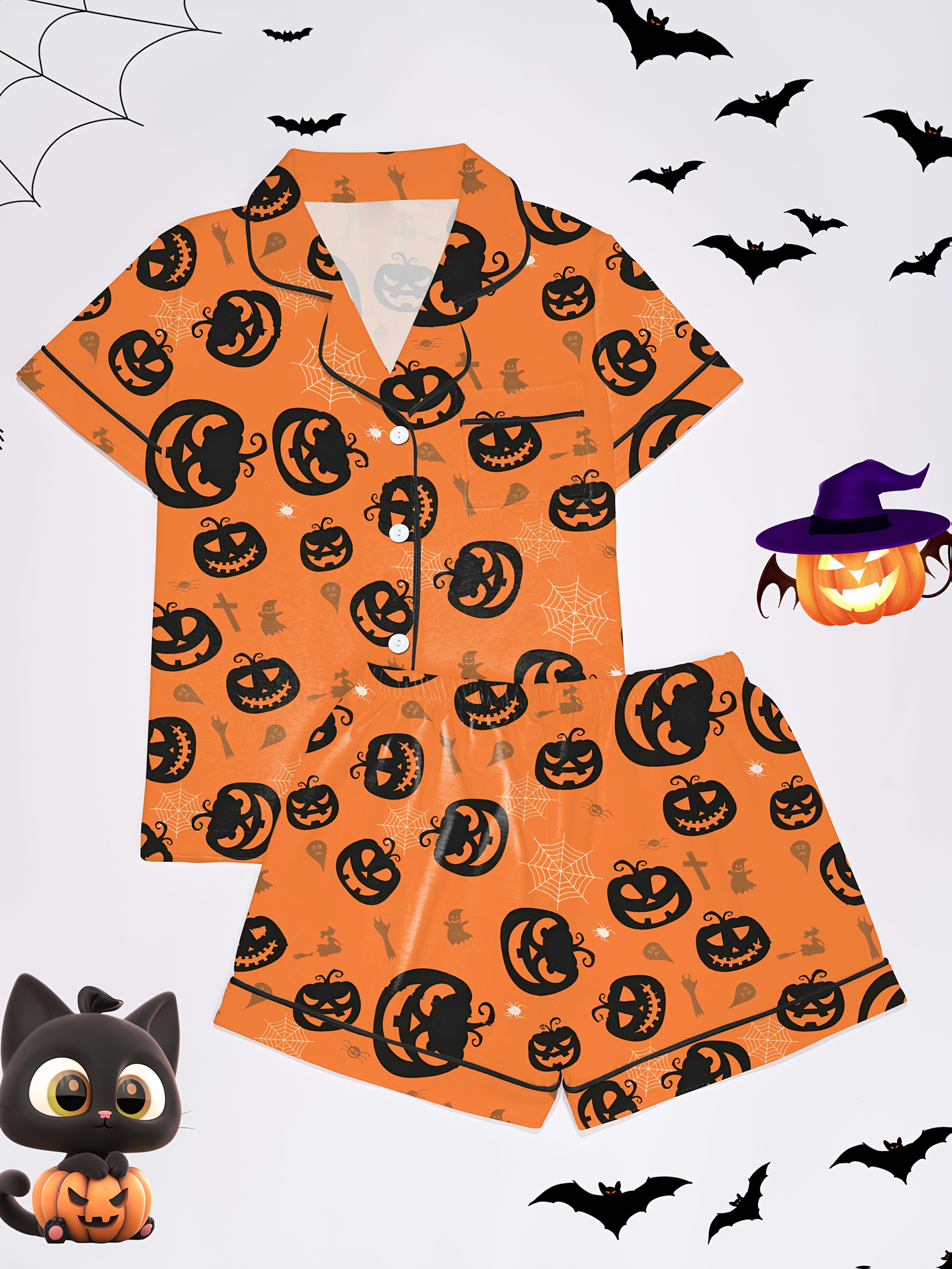 Autumn Glow Silk‑Touch Modal Pajama Set — Short‑Sleeve Button Top + Elastic‑Waist Shorts