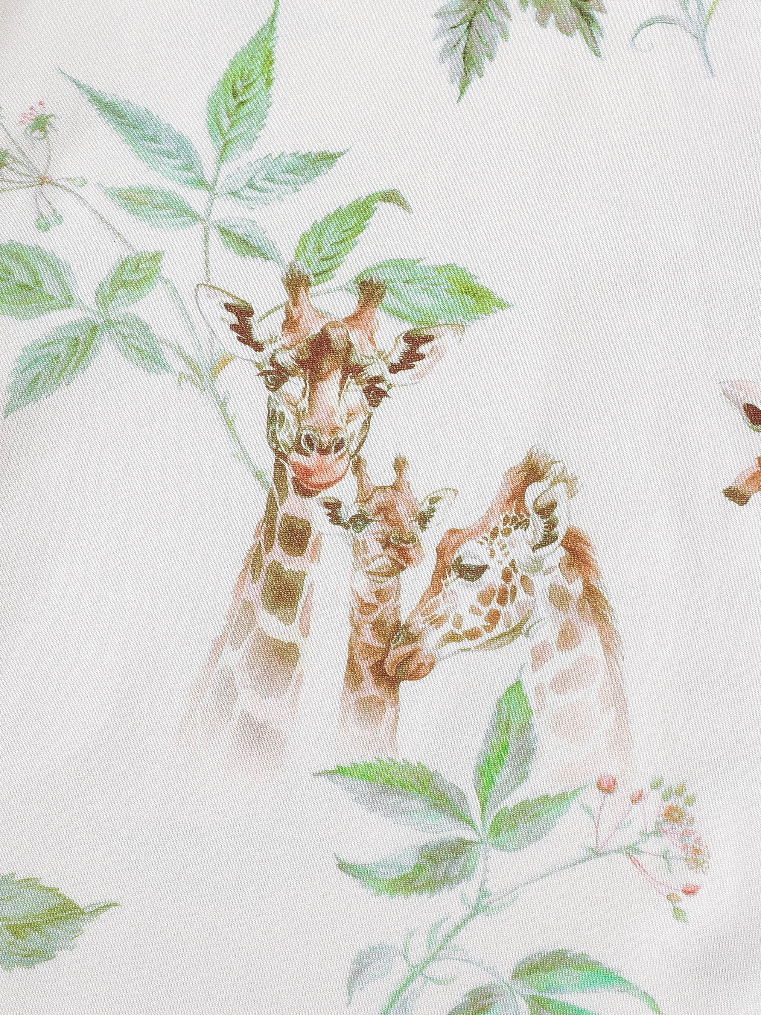 Comfortable Relaxed Fit Women's Short Sleeve Giraffe & Leaf Print Casual Pajama Set with Buttons Lapel Top & Shorts