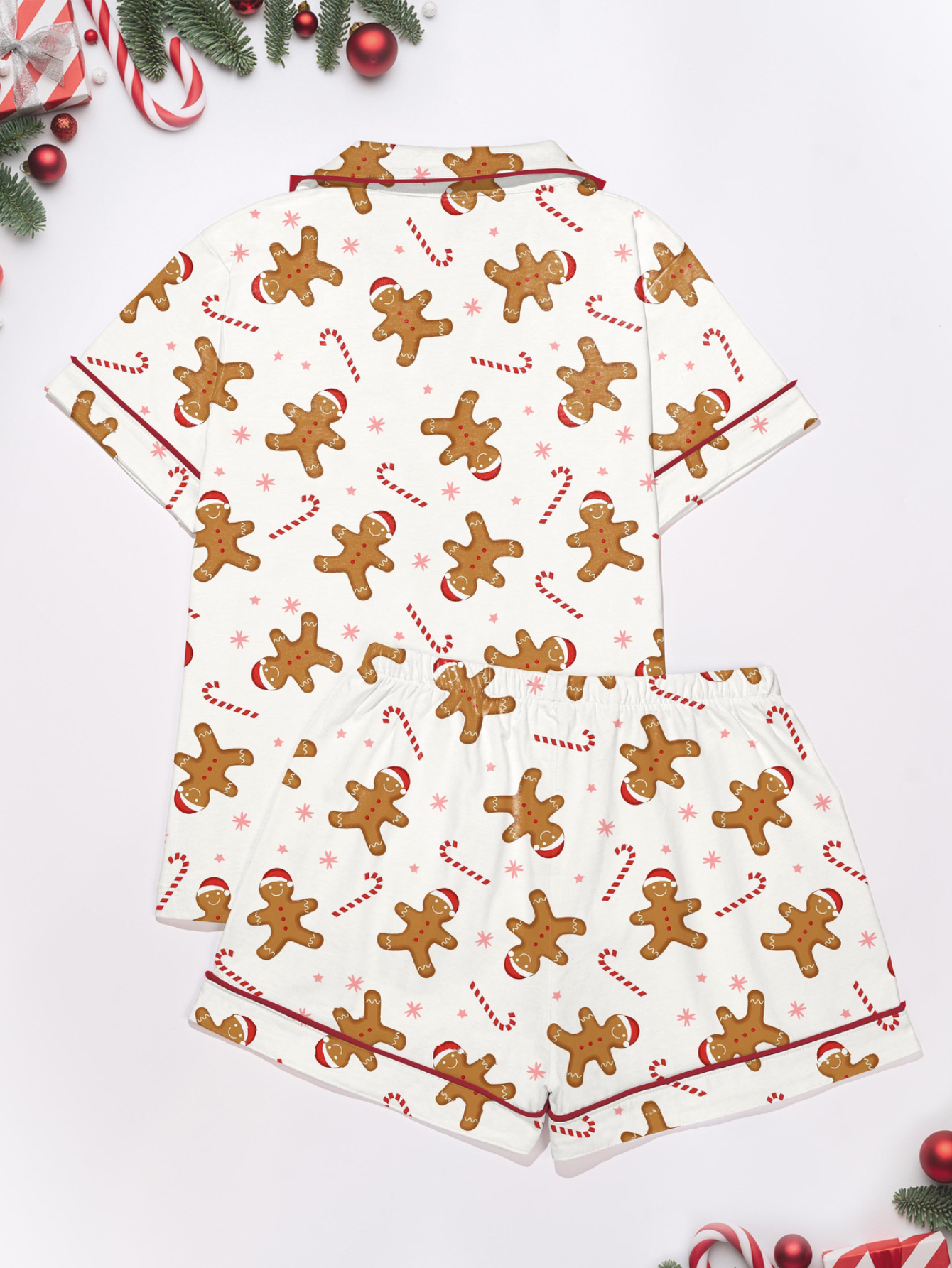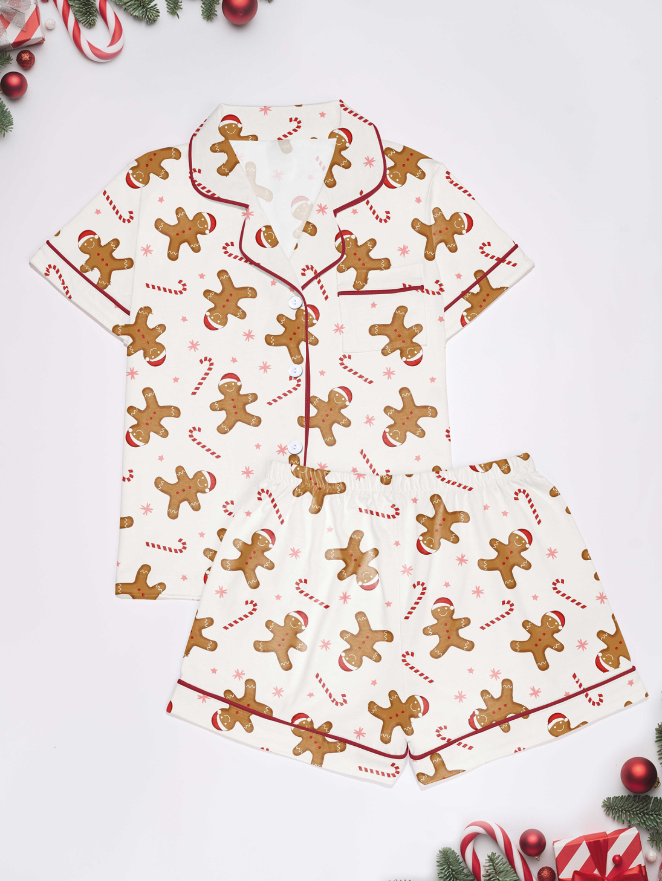 Gingerbread Glow Modal Pajama Set — Silky Short‑Sleeve Button Top + Elastic‑Waist Shorts