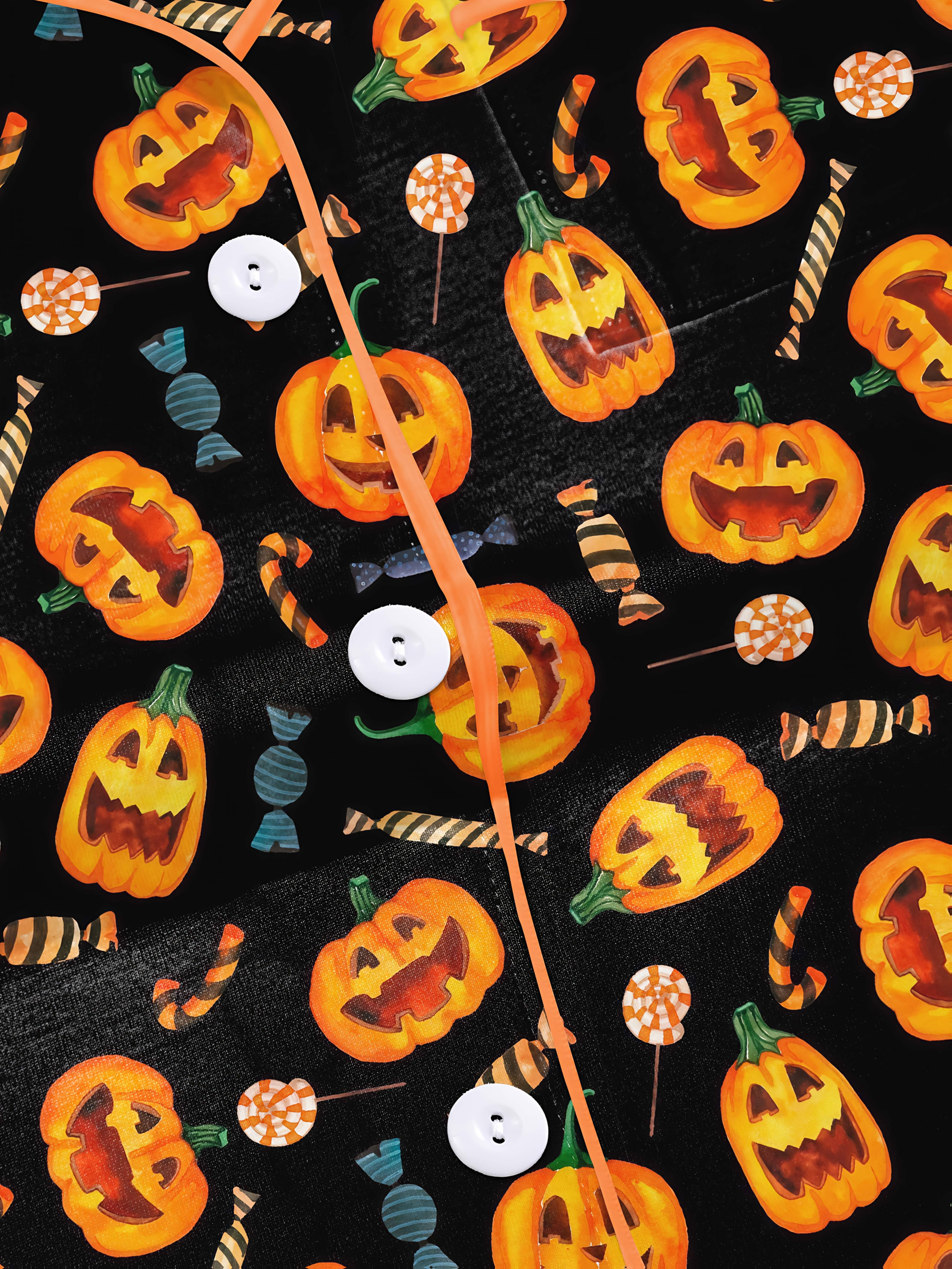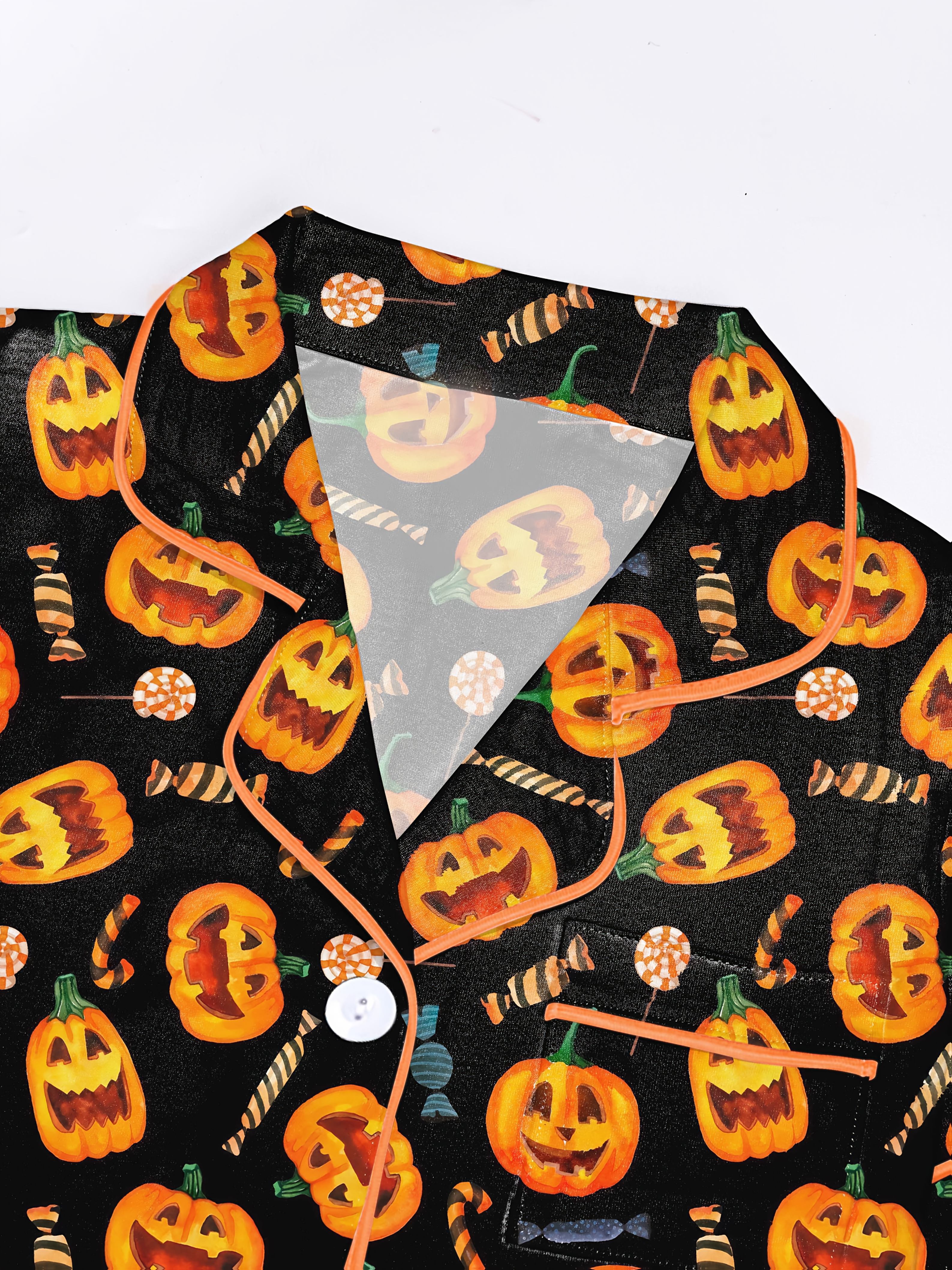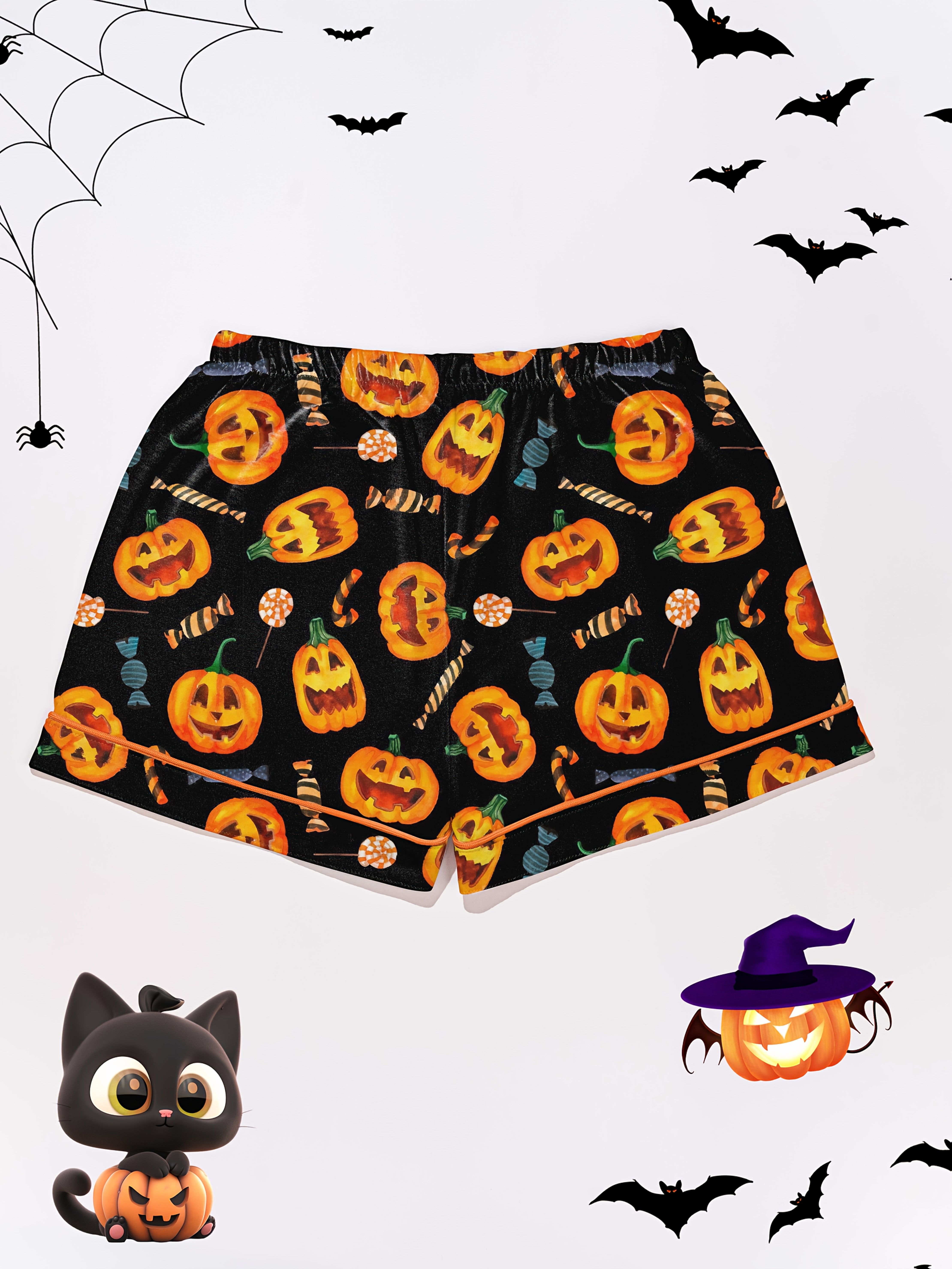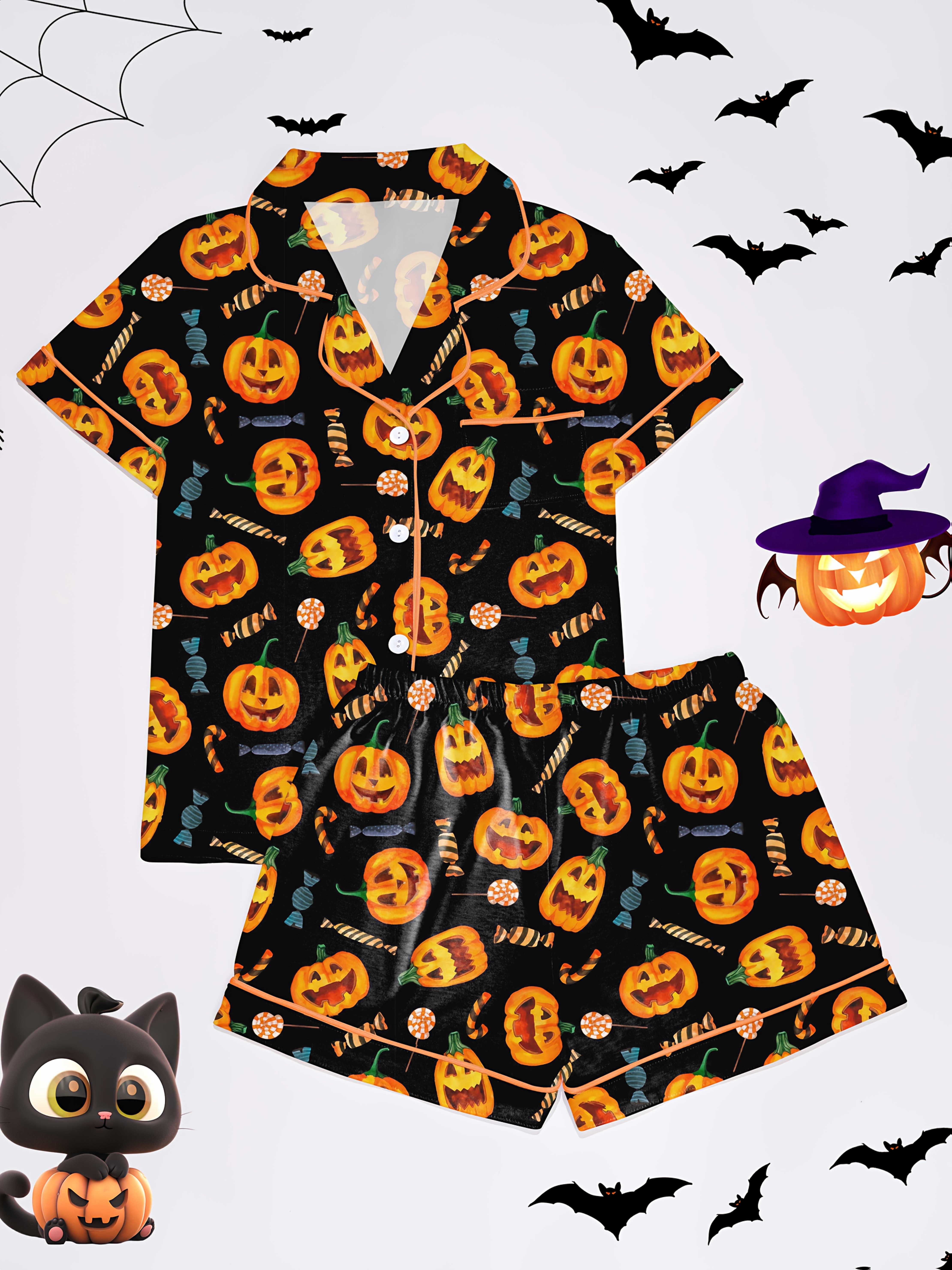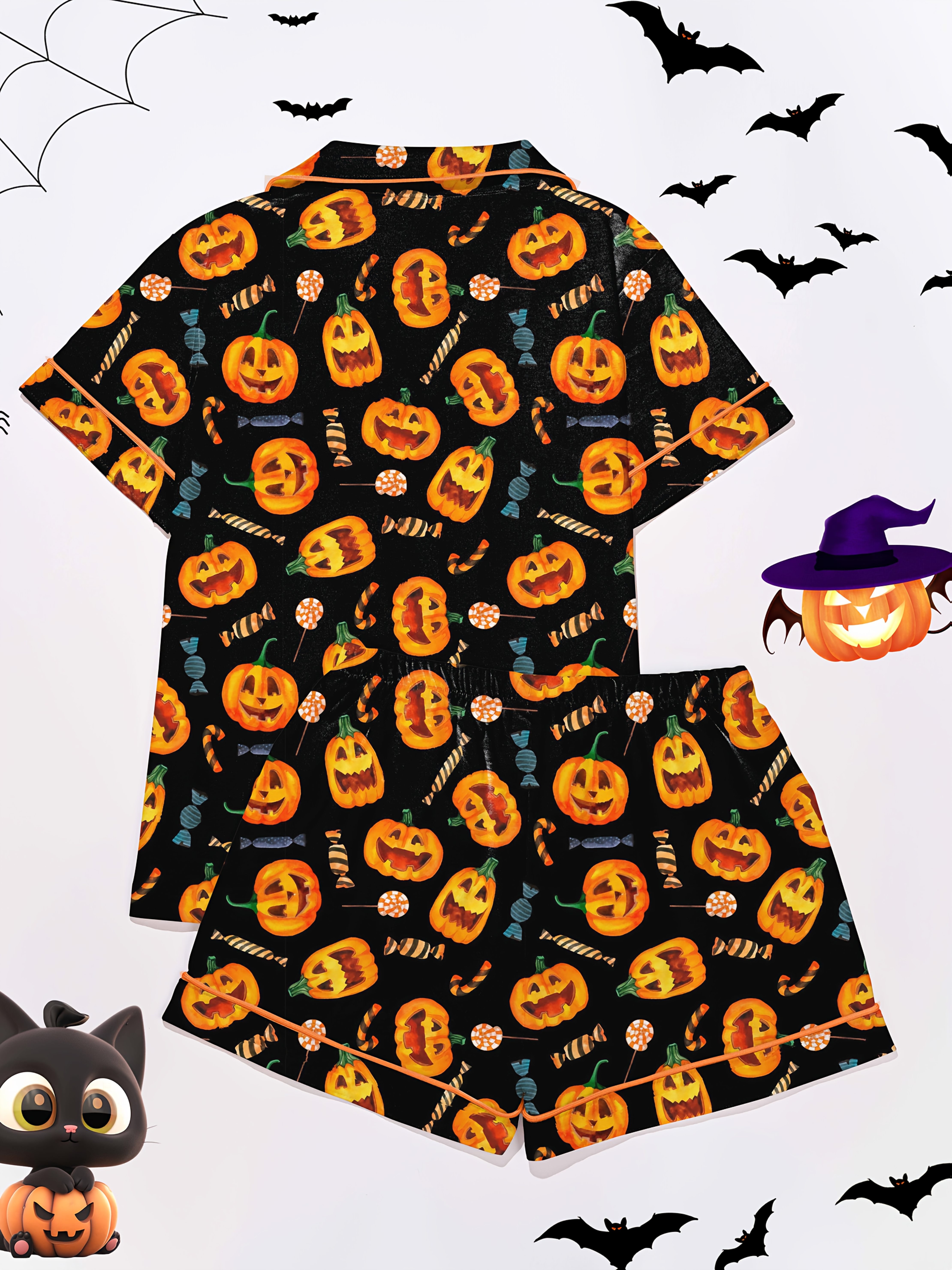 Jack‑O’Lantern Midnight Modal Pajama Set — Silky Short‑Sleeve Button Top + Elastic‑Waist Shorts