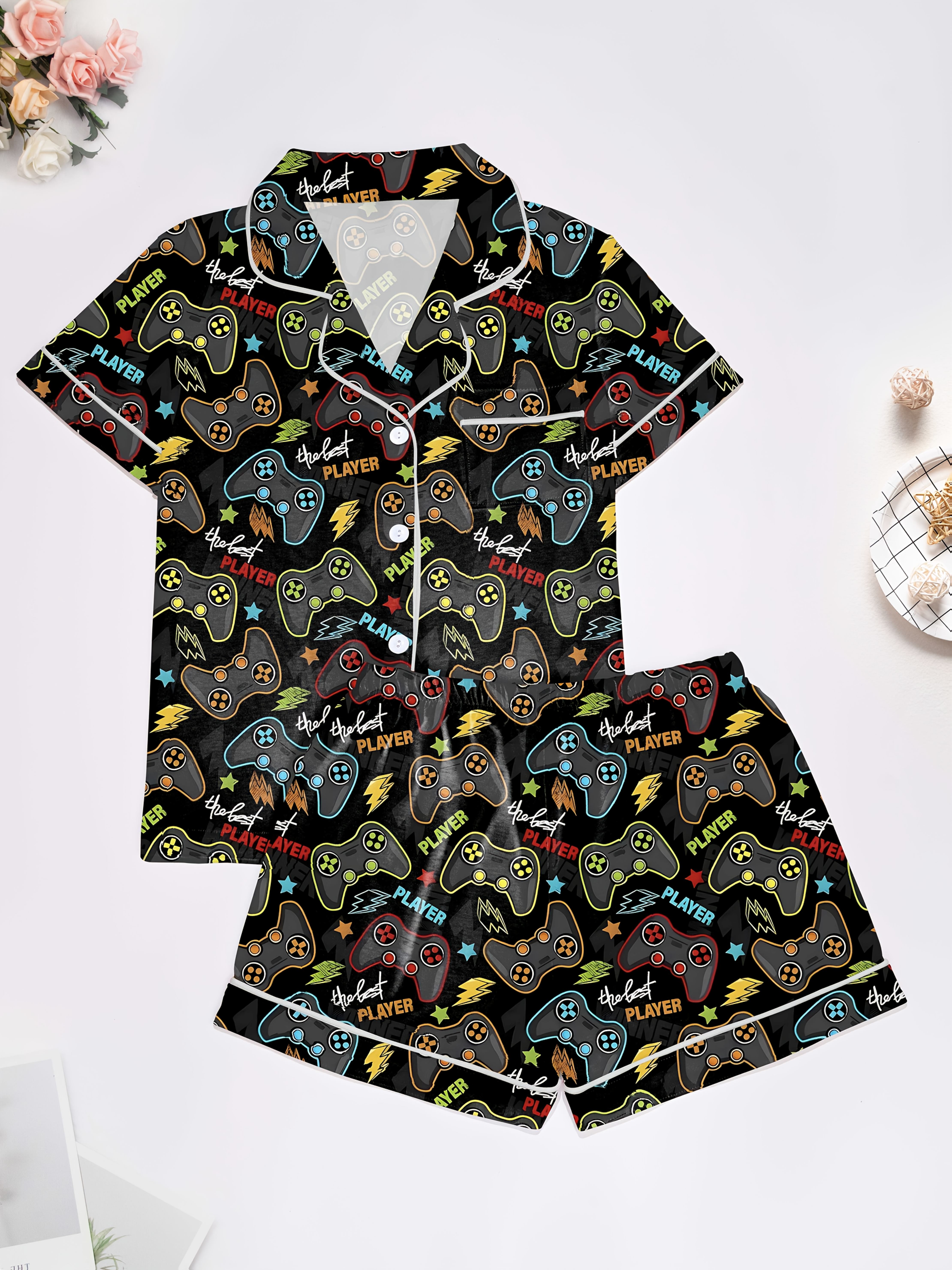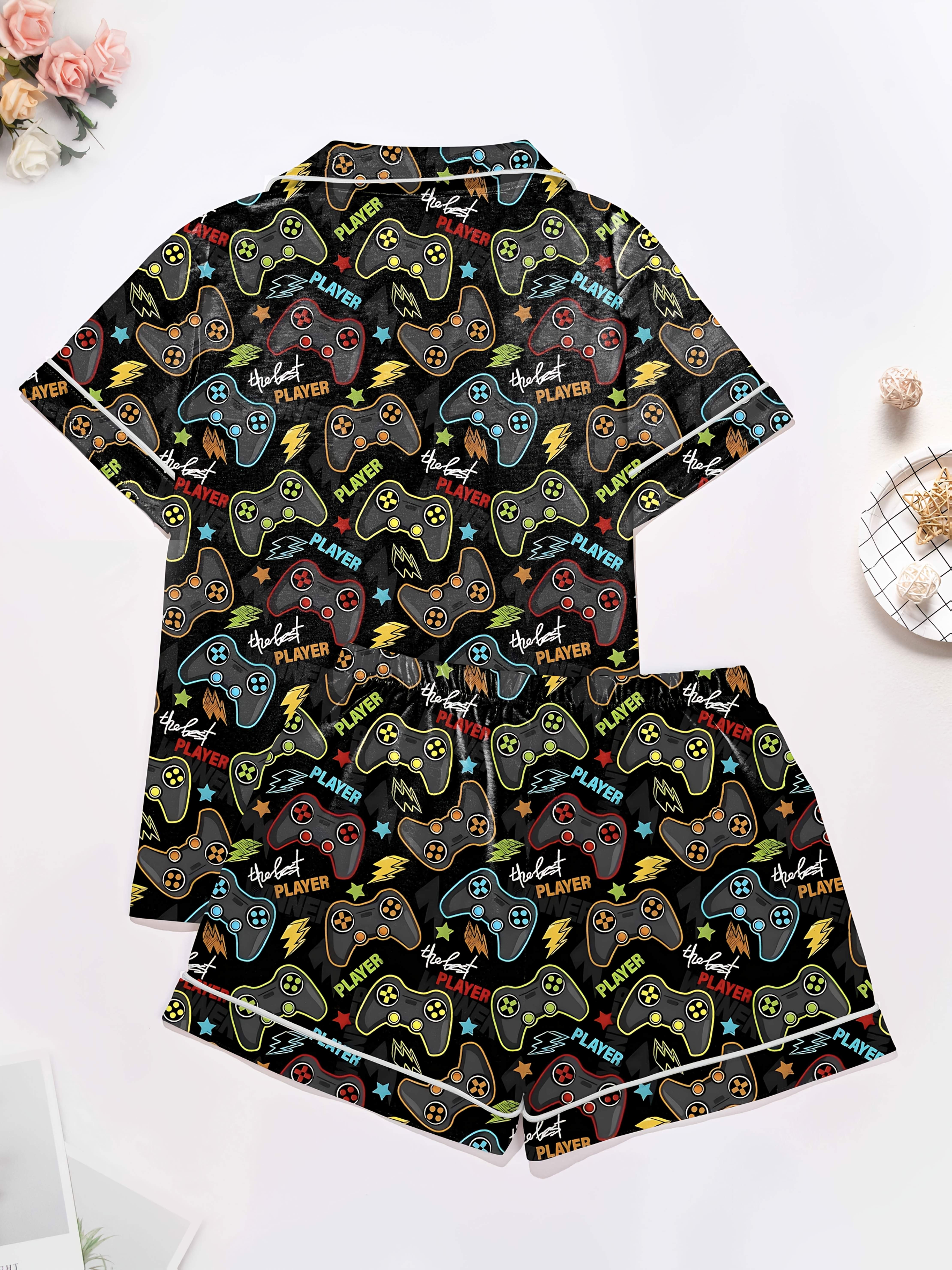 Level Up Modal Pajama Set — Silky Short‑Sleeve Button Top + Elastic‑Waist Shorts