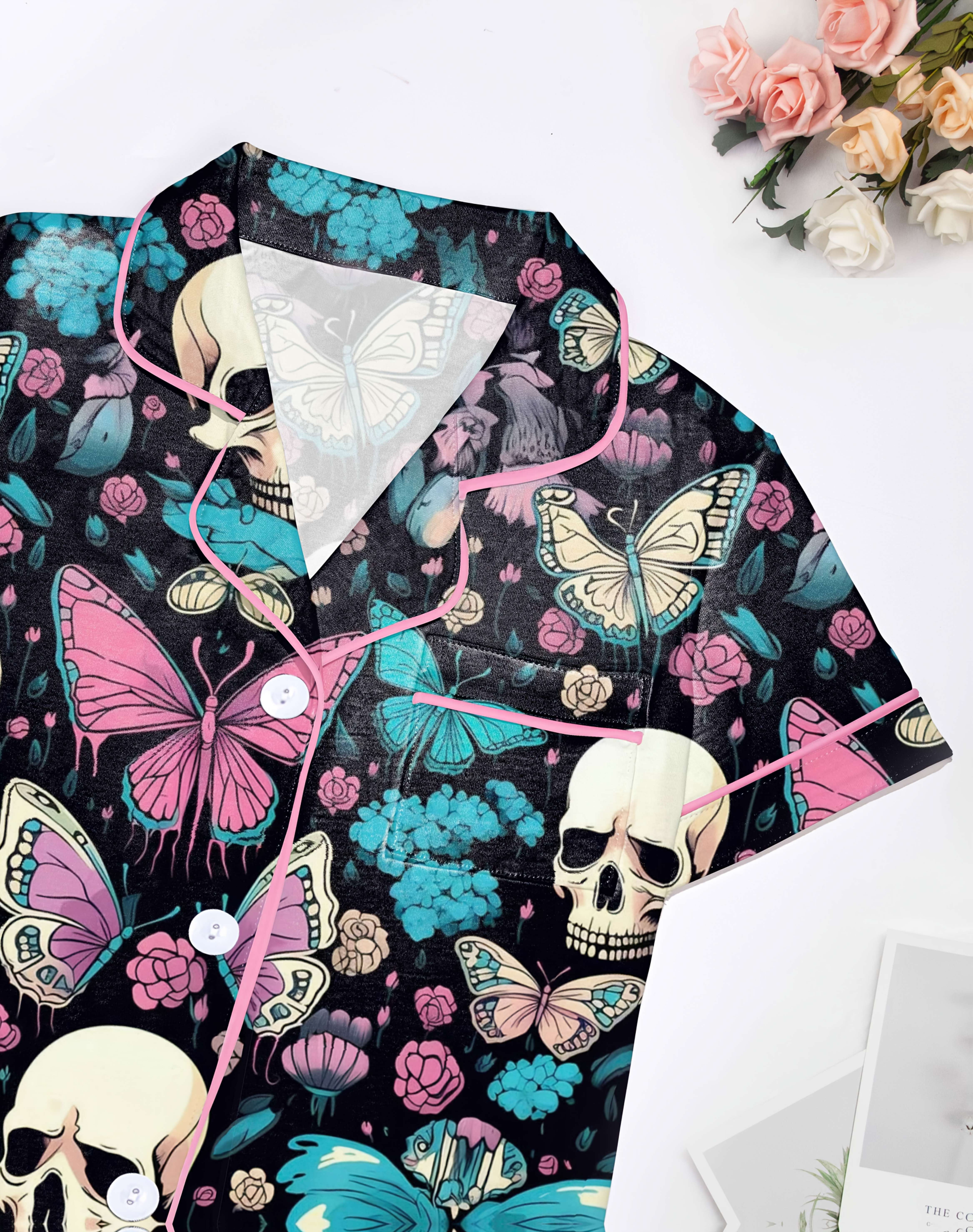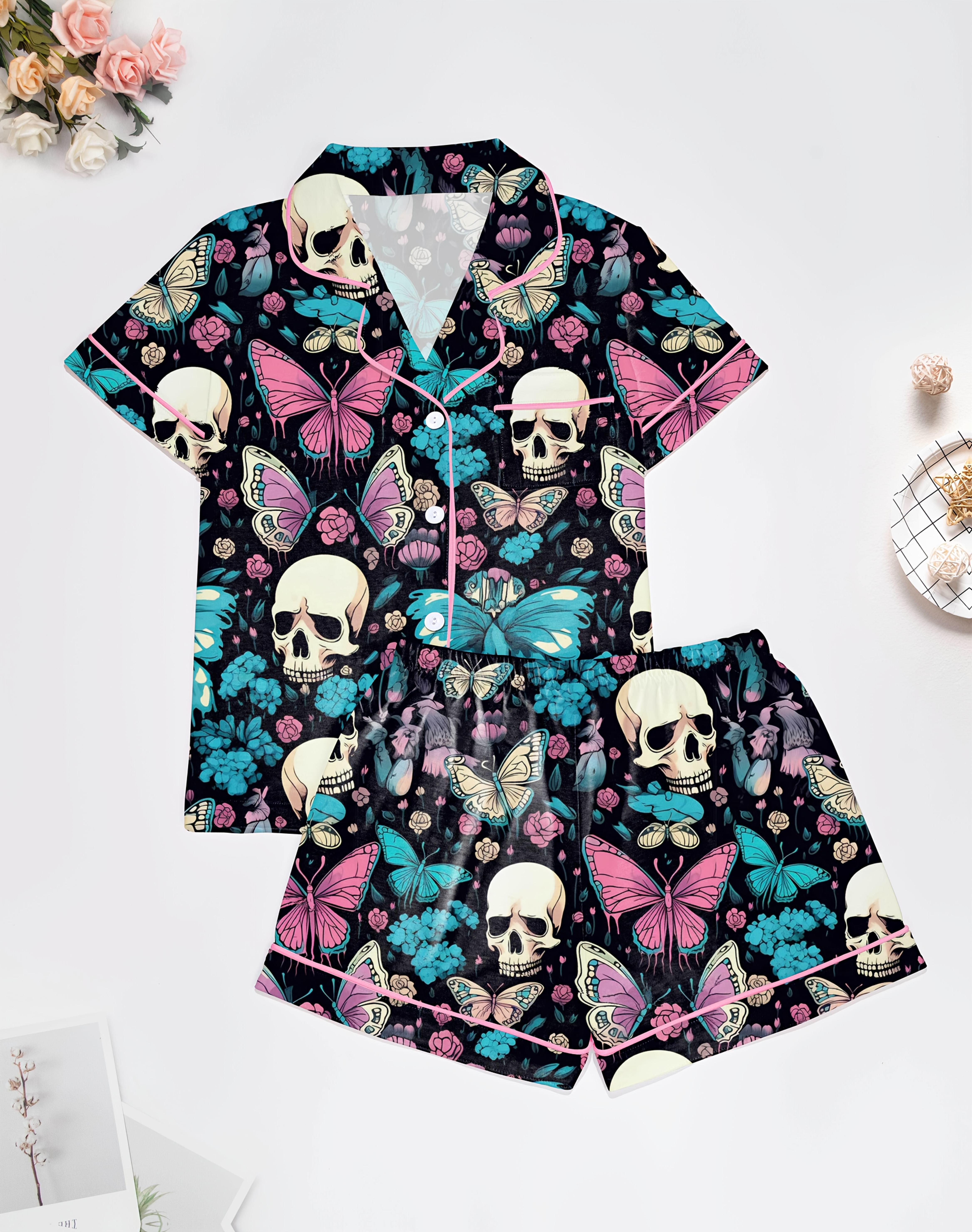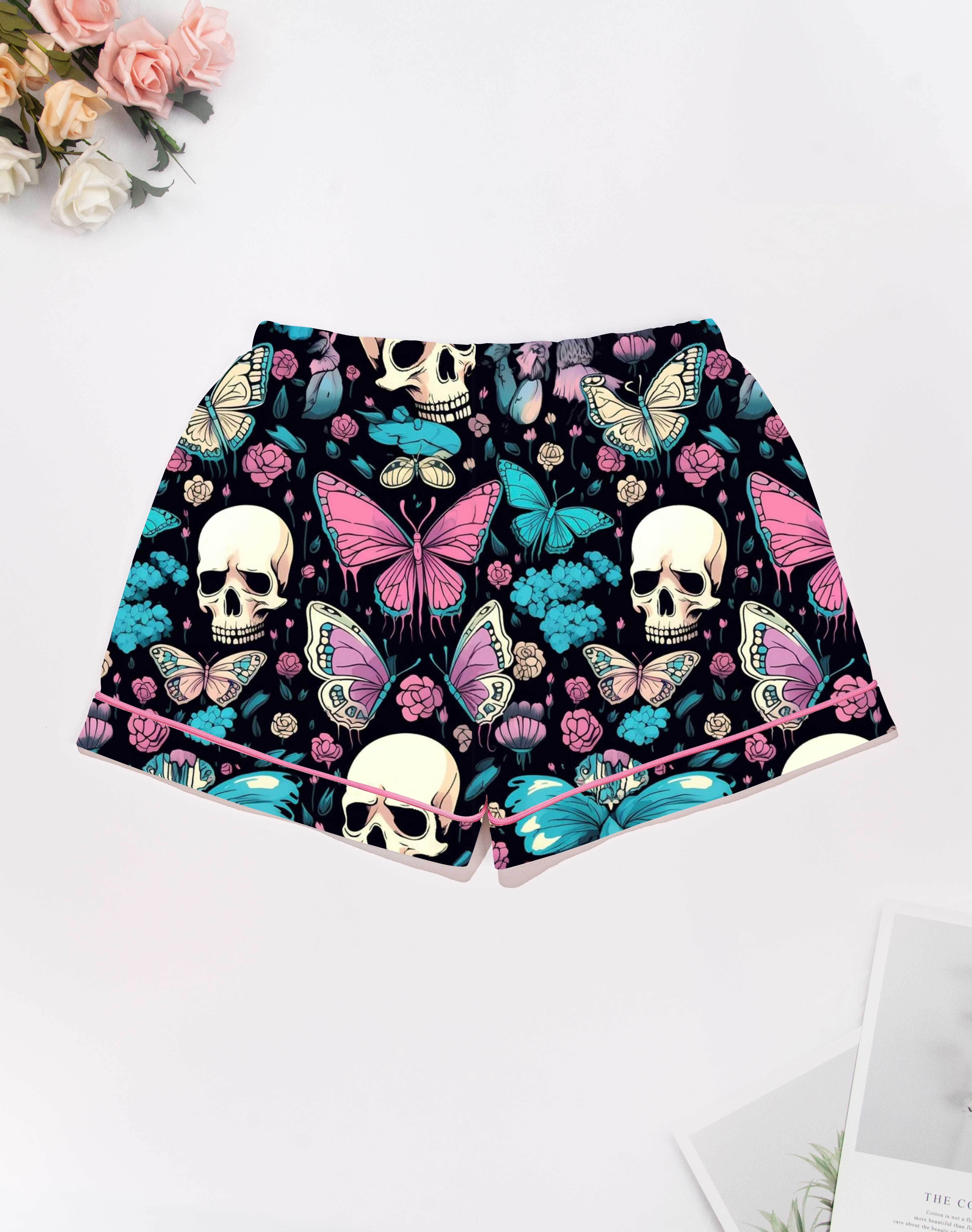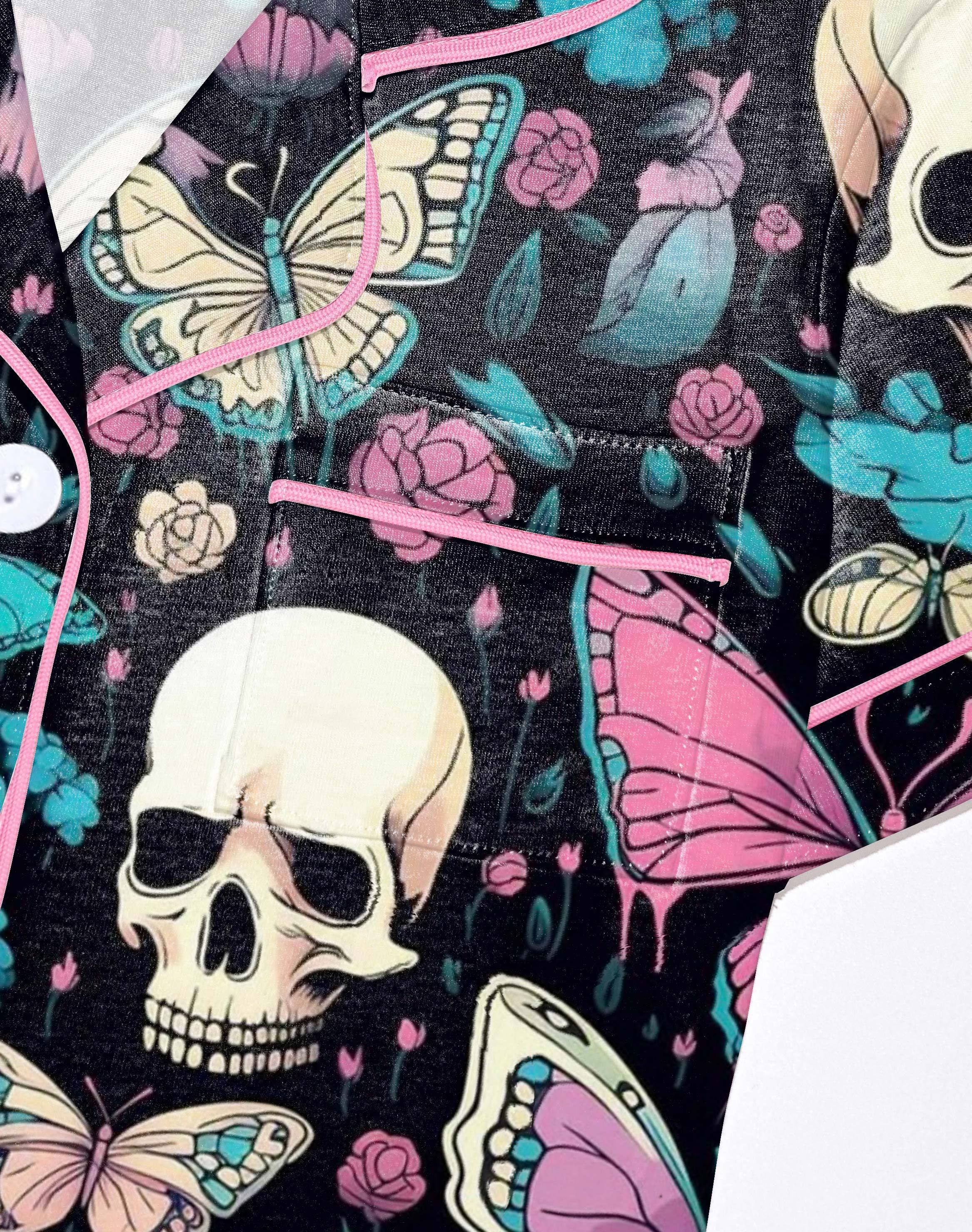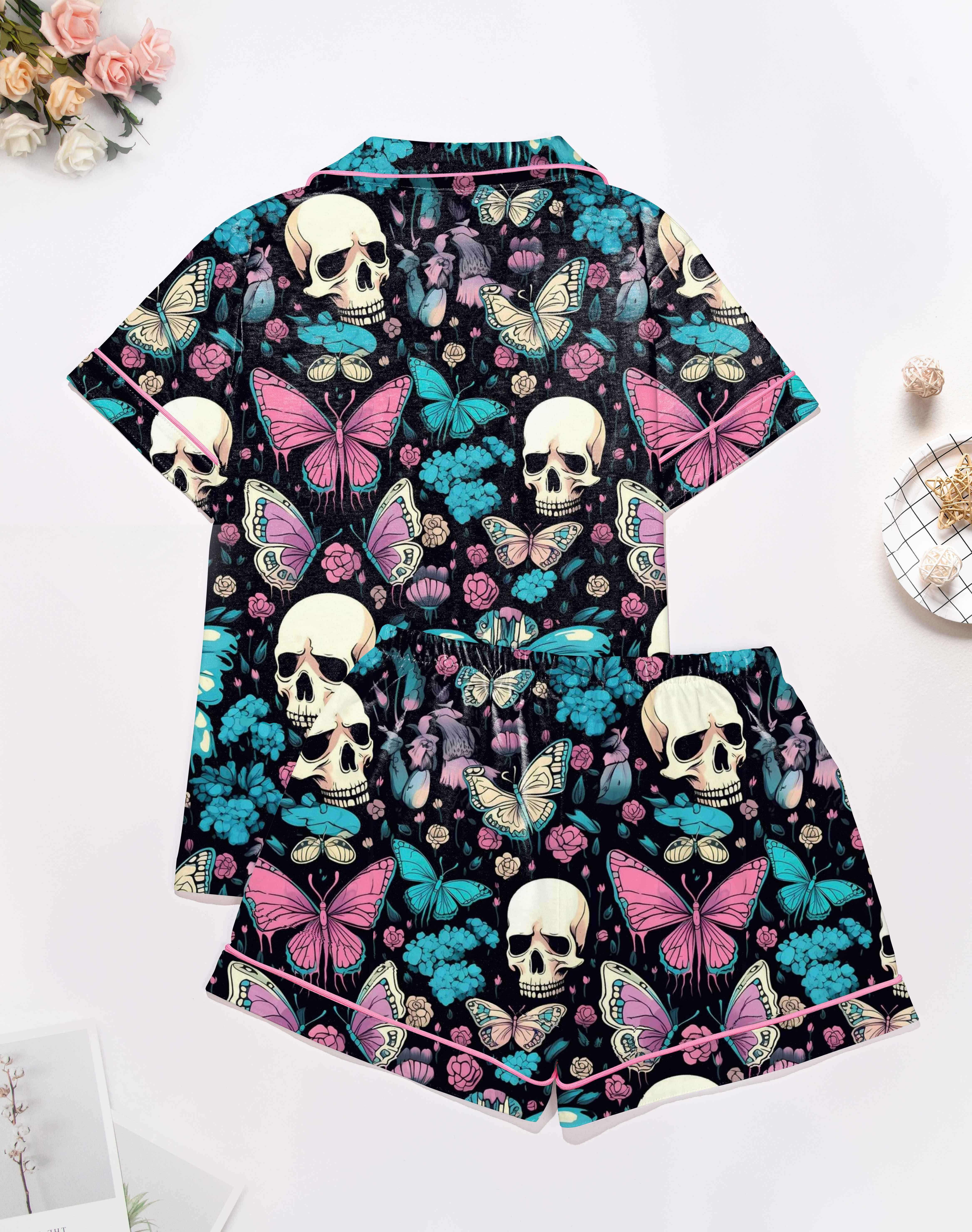 Midnight Butterflies Modal Pajama Set — Silky Short‑Sleeve Button Top + Elastic‑Waist Shorts