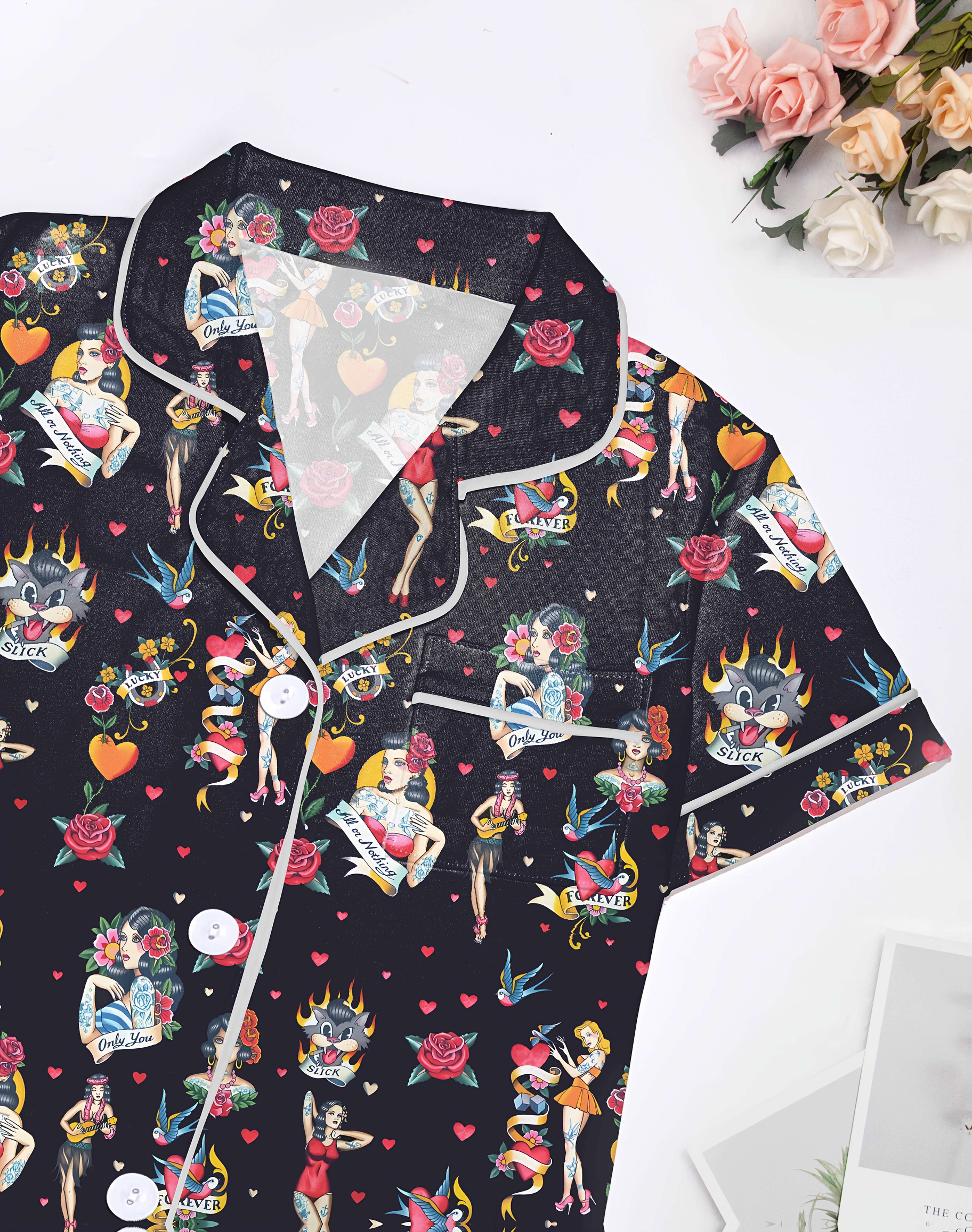 Midnight Ink Silk‑Touch Modal Pajama Set — Short‑Sleeve Button Top + Elastic‑Waist Shorts
