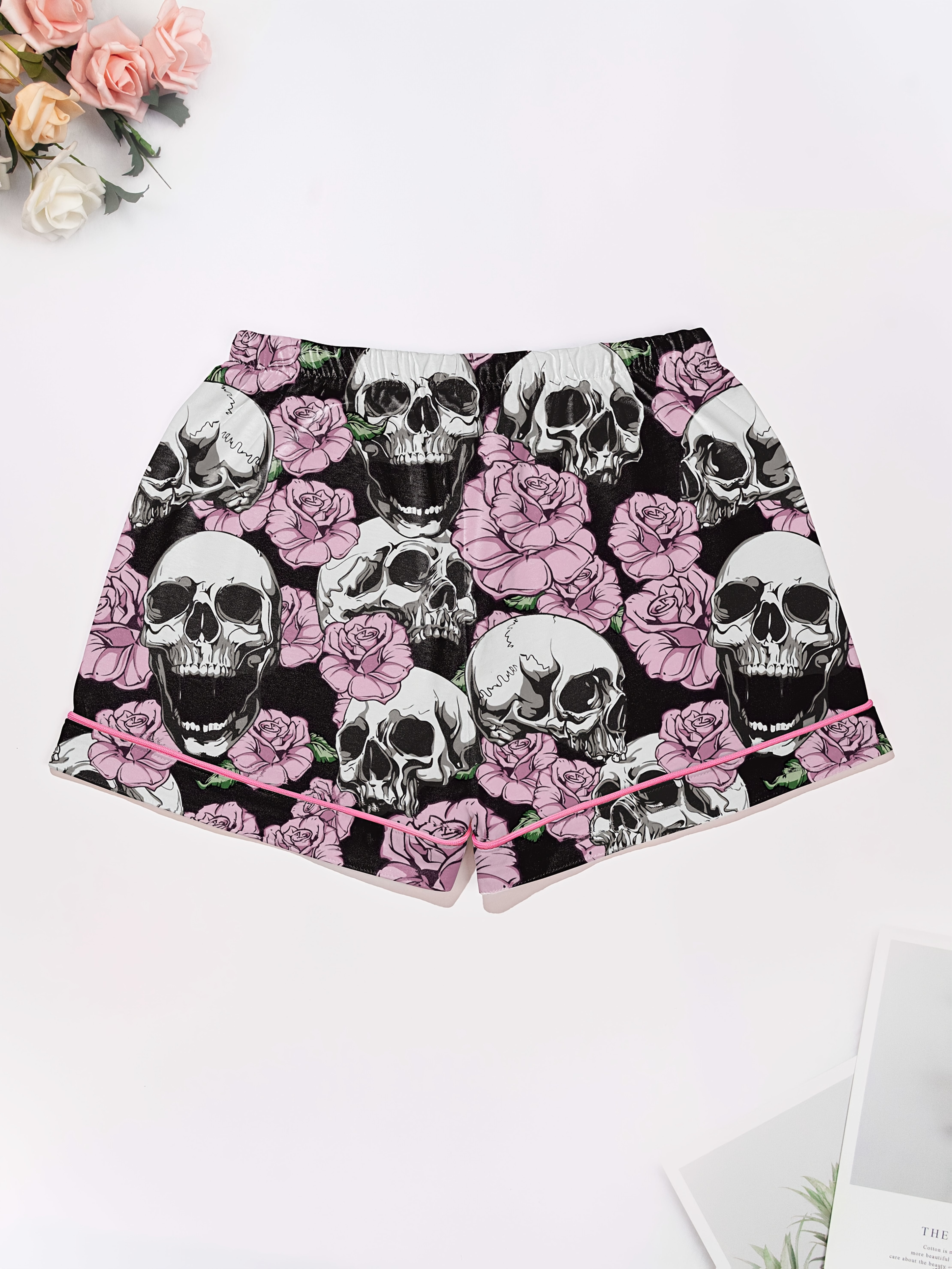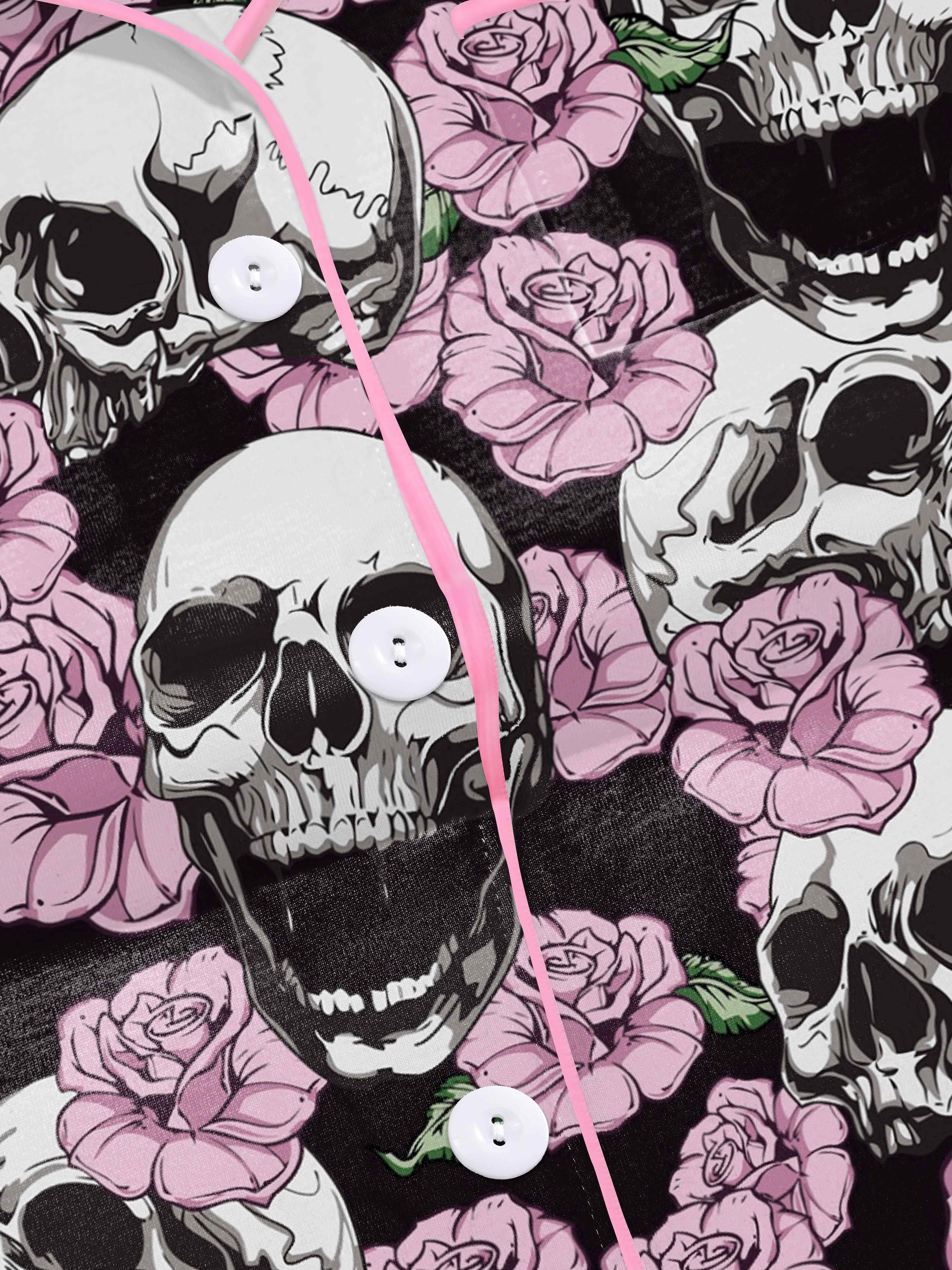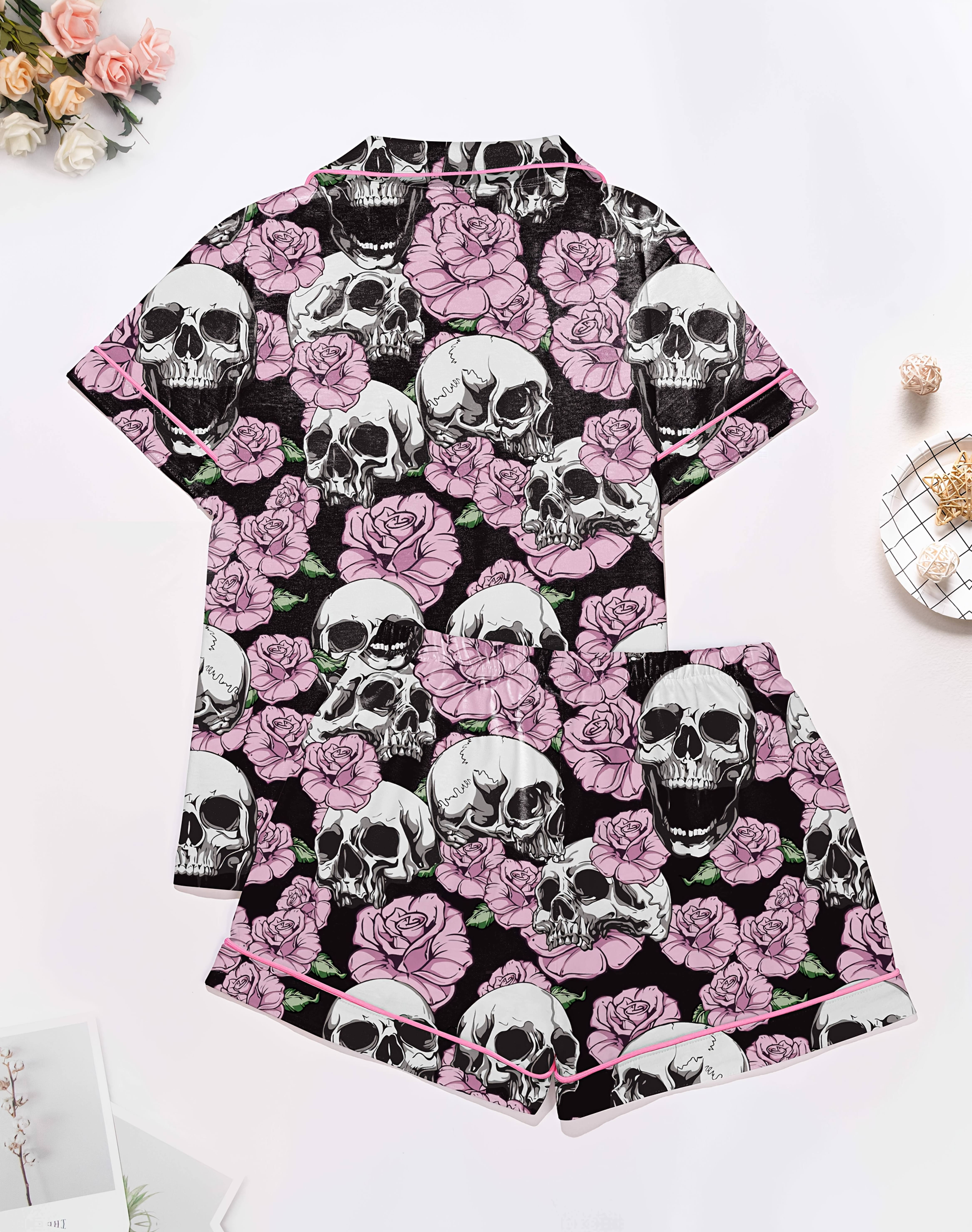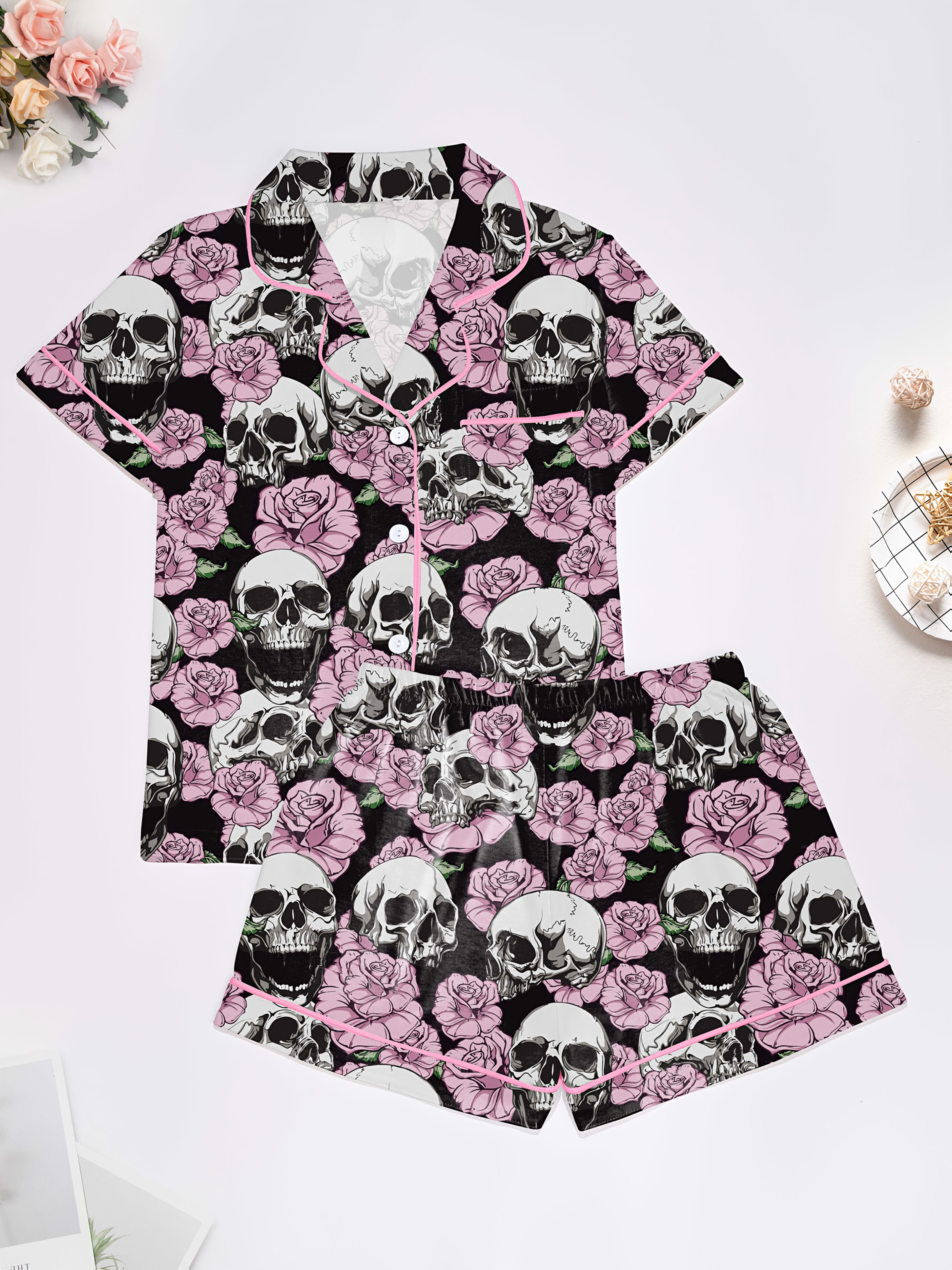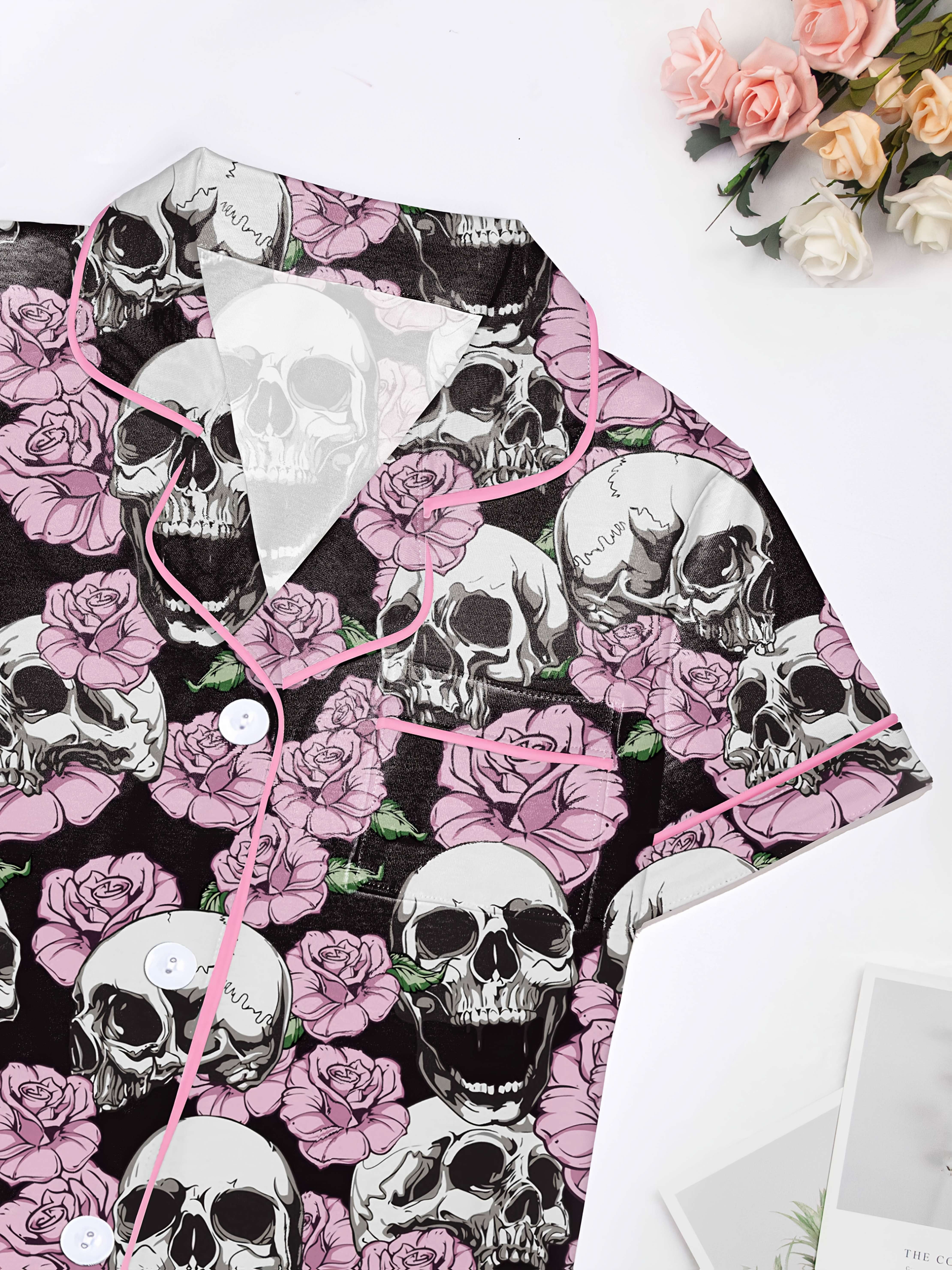 Midnight Roses Modal Pajama Set — Silky Short‑Sleeve Button Top + Elastic‑Waist Shorts