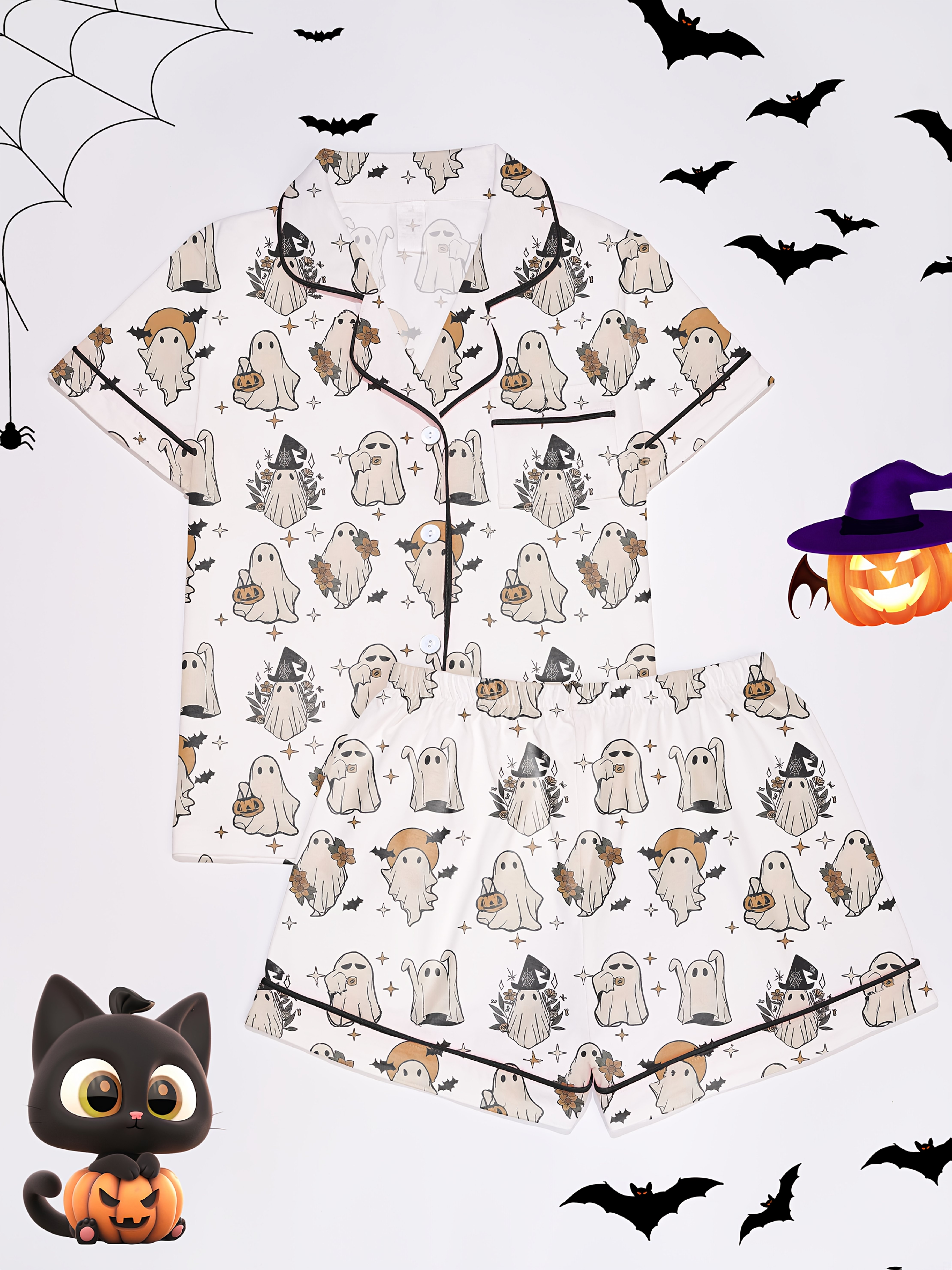 Moonlit Modal Pajama Set — Silky Short‑Sleeve Button Top + Elastic‑Waist Shorts