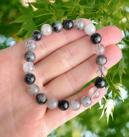 This One Tourmalinated Quartz Bracelet 8mm will make an eye-catching addition to any jewelry collection. The highly polished 8mm Tourmalinated Quartz beads are sure to be a conversation starter. Enjoy the calming, grounding, and protective energies of this bracelet.