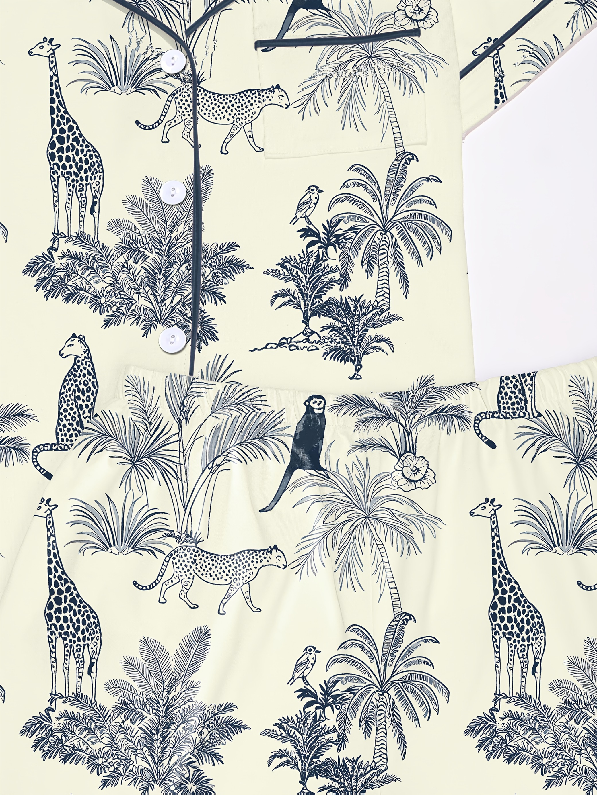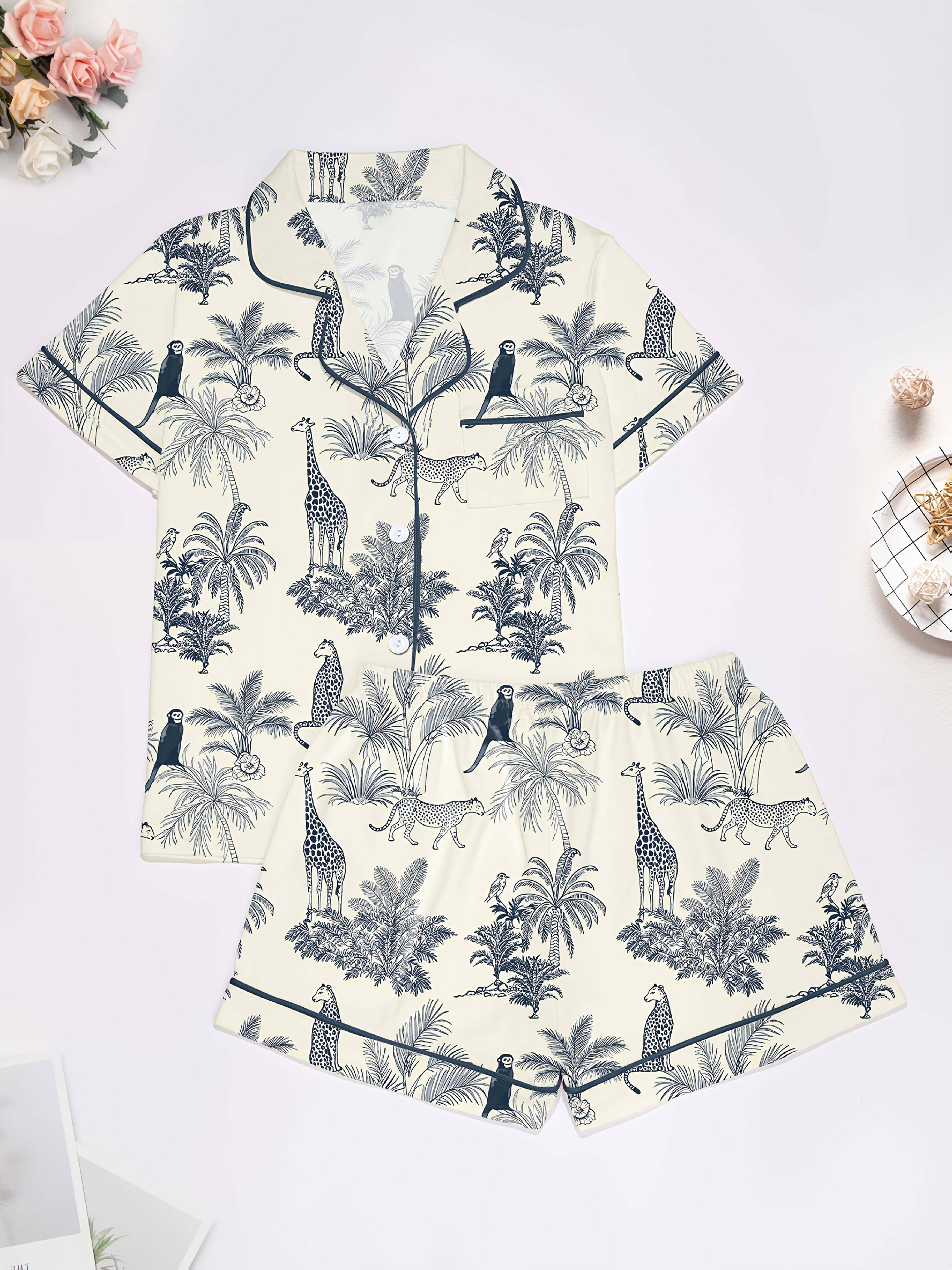 Palm & Prowl Moonlit Modal Pajama Set — Silky Short‑Sleeve Button Top + Elastic‑Waist Shorts