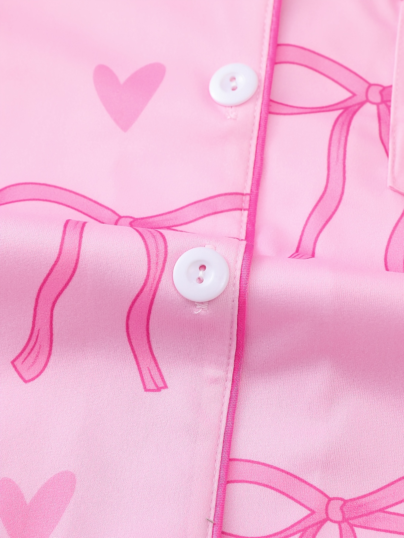 Pink Bow Satin‑Look Pajama Set
