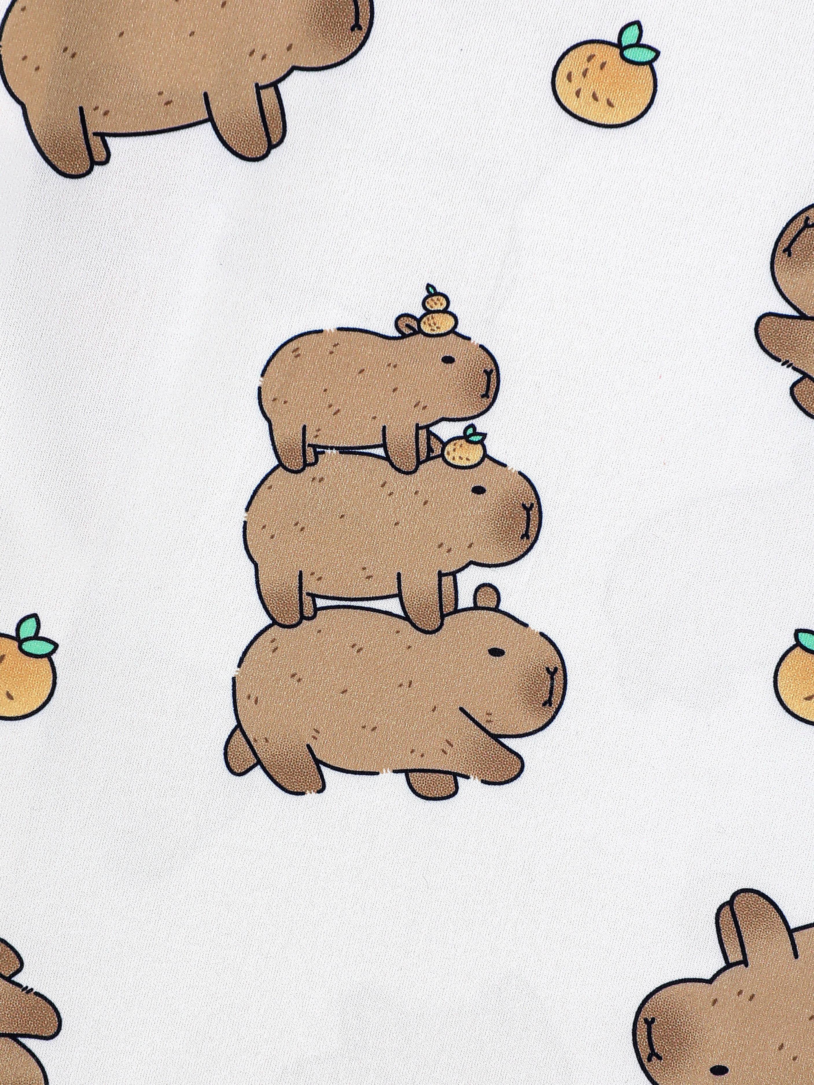 Short Sleeve Women's Cute Capybara Print Pajama Set, Elastic Shorts & Buttons Lapel Top Sleepwear
