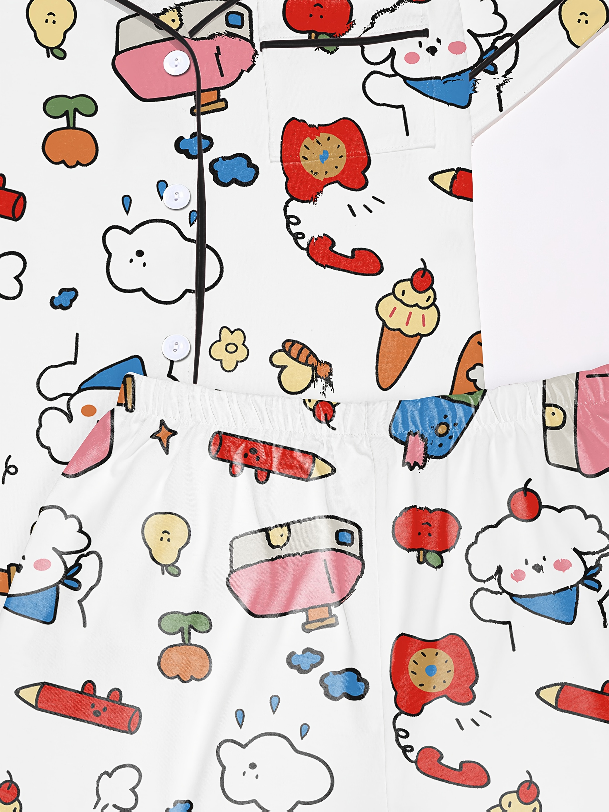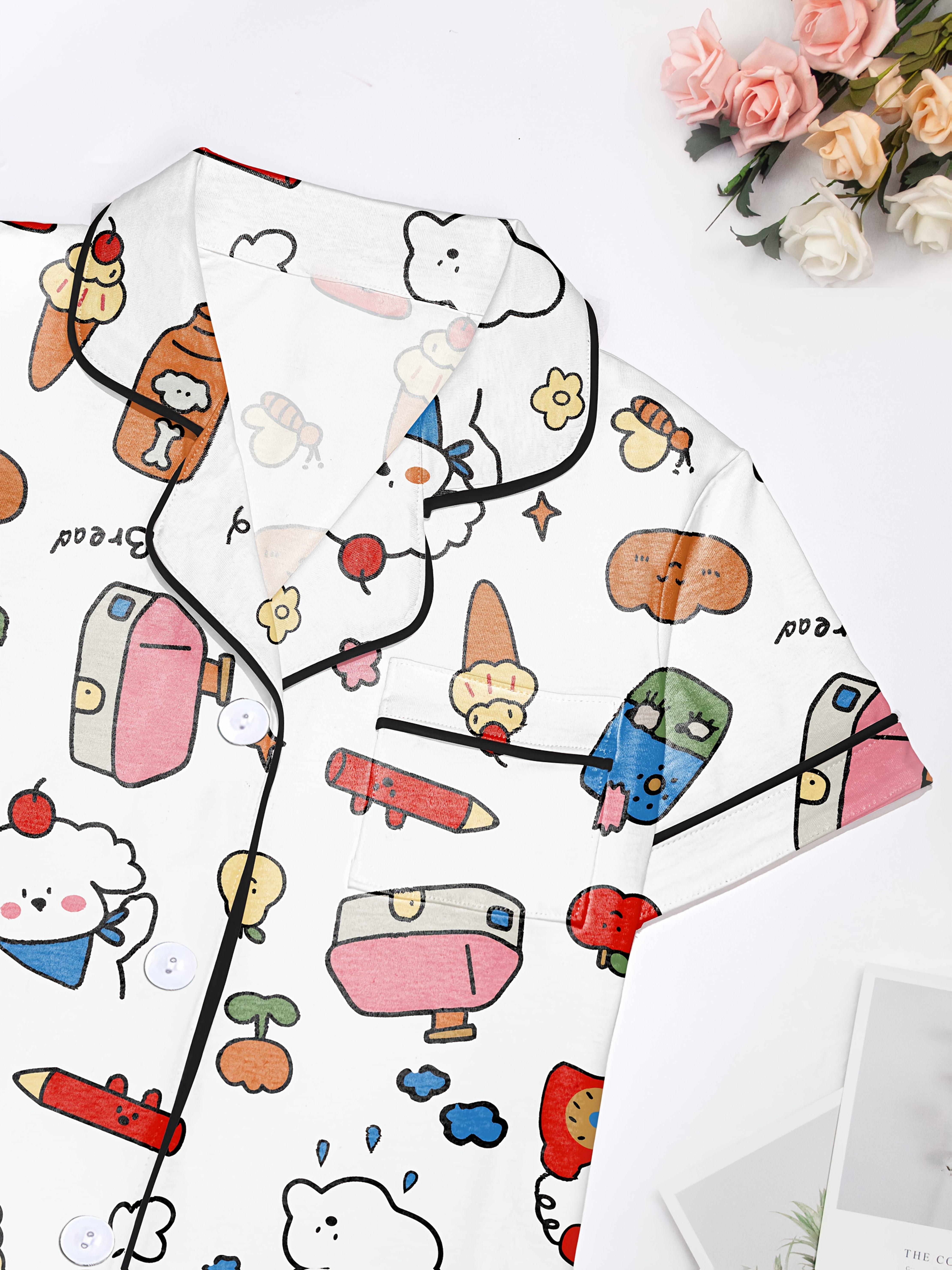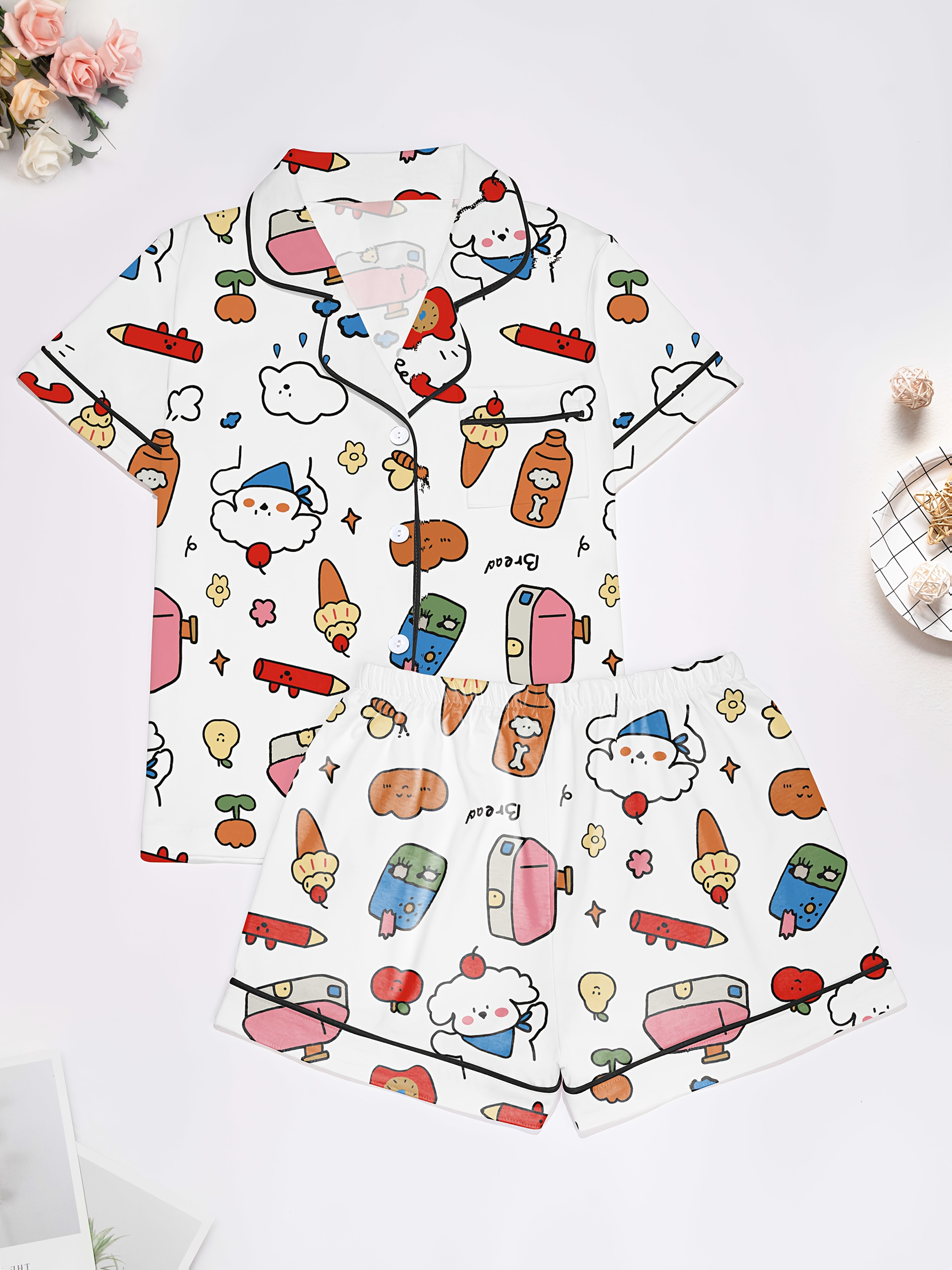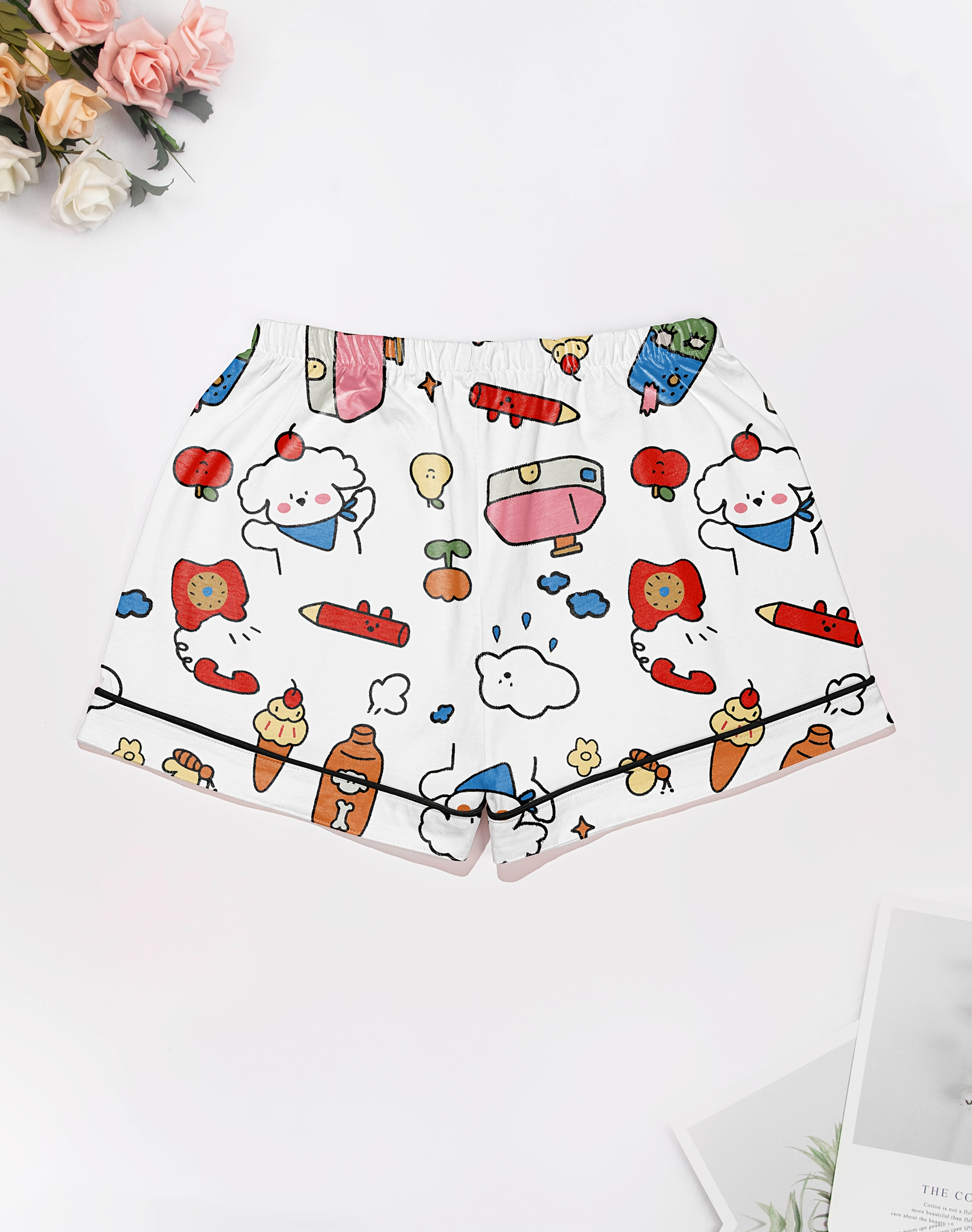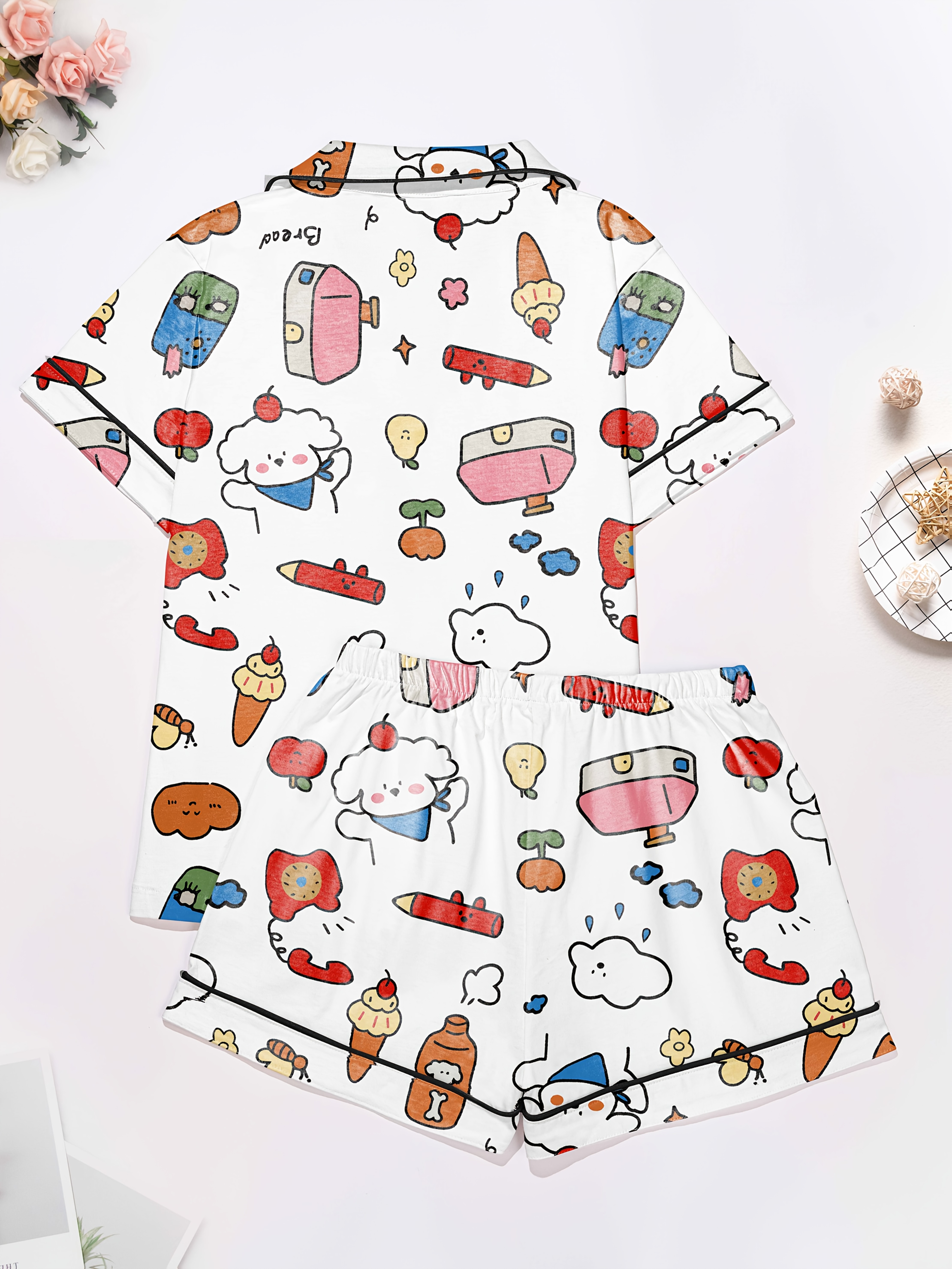 Sugar Sketch Silk‑Touch Modal Pajama Set — Short‑Sleeve Button Top + Elastic‑Waist Shorts