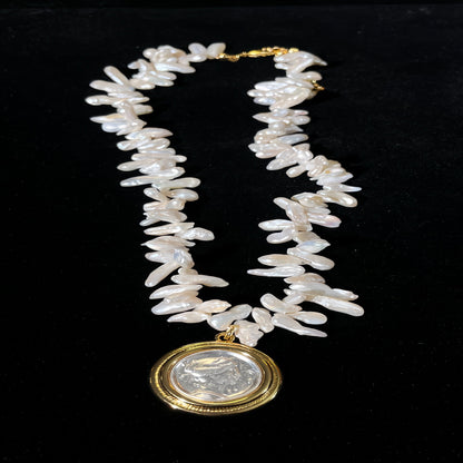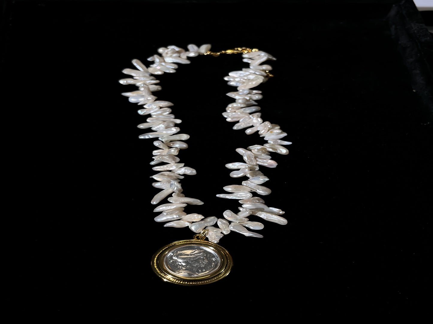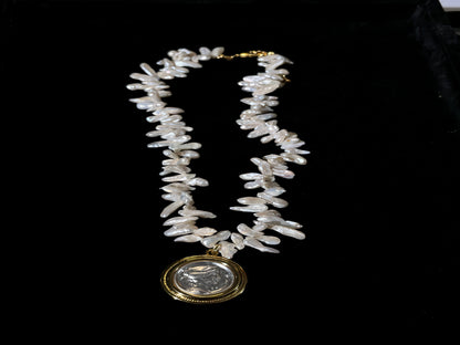 Uniquely Shaped Baroque Pearl Vintage Coin"