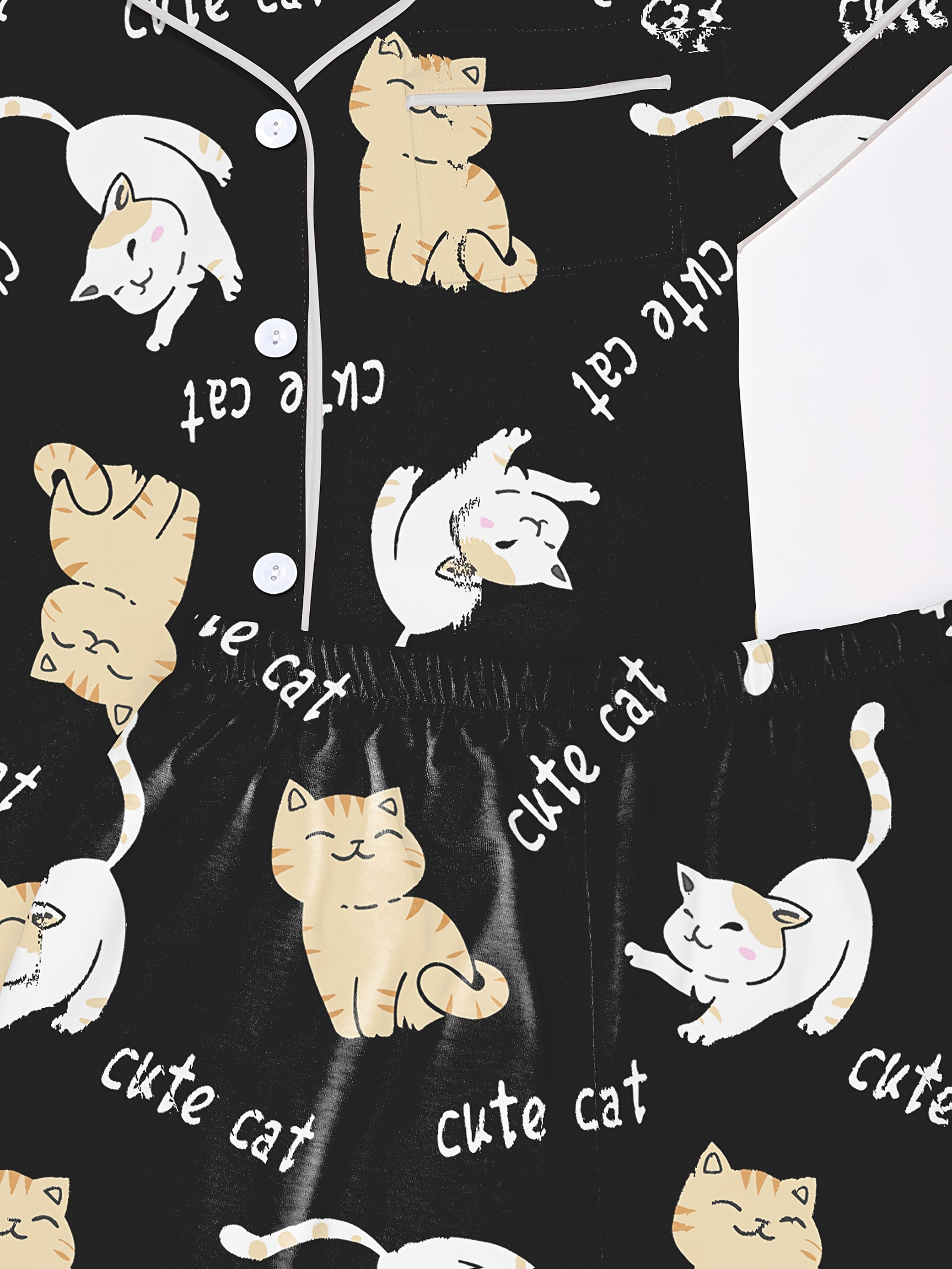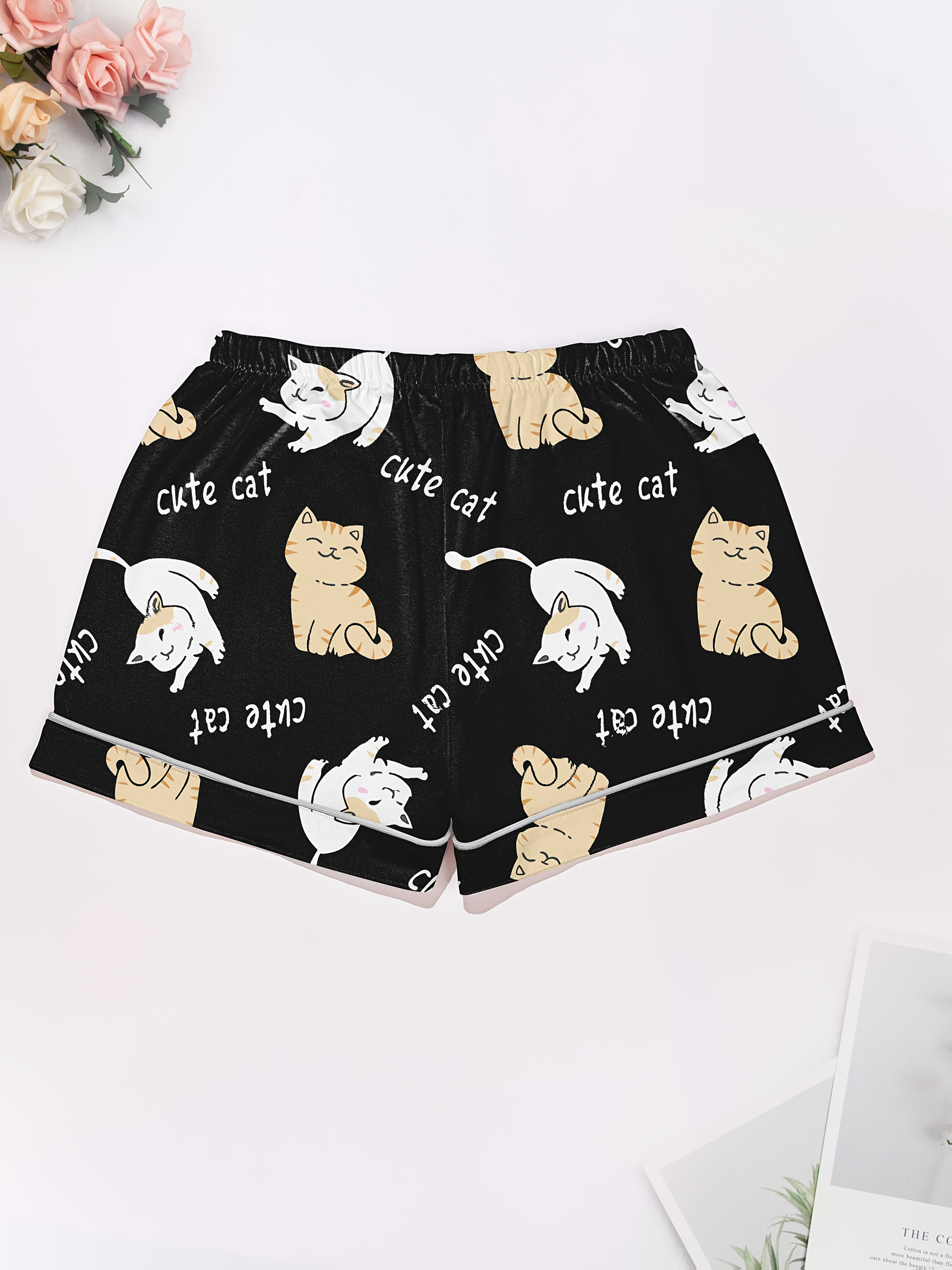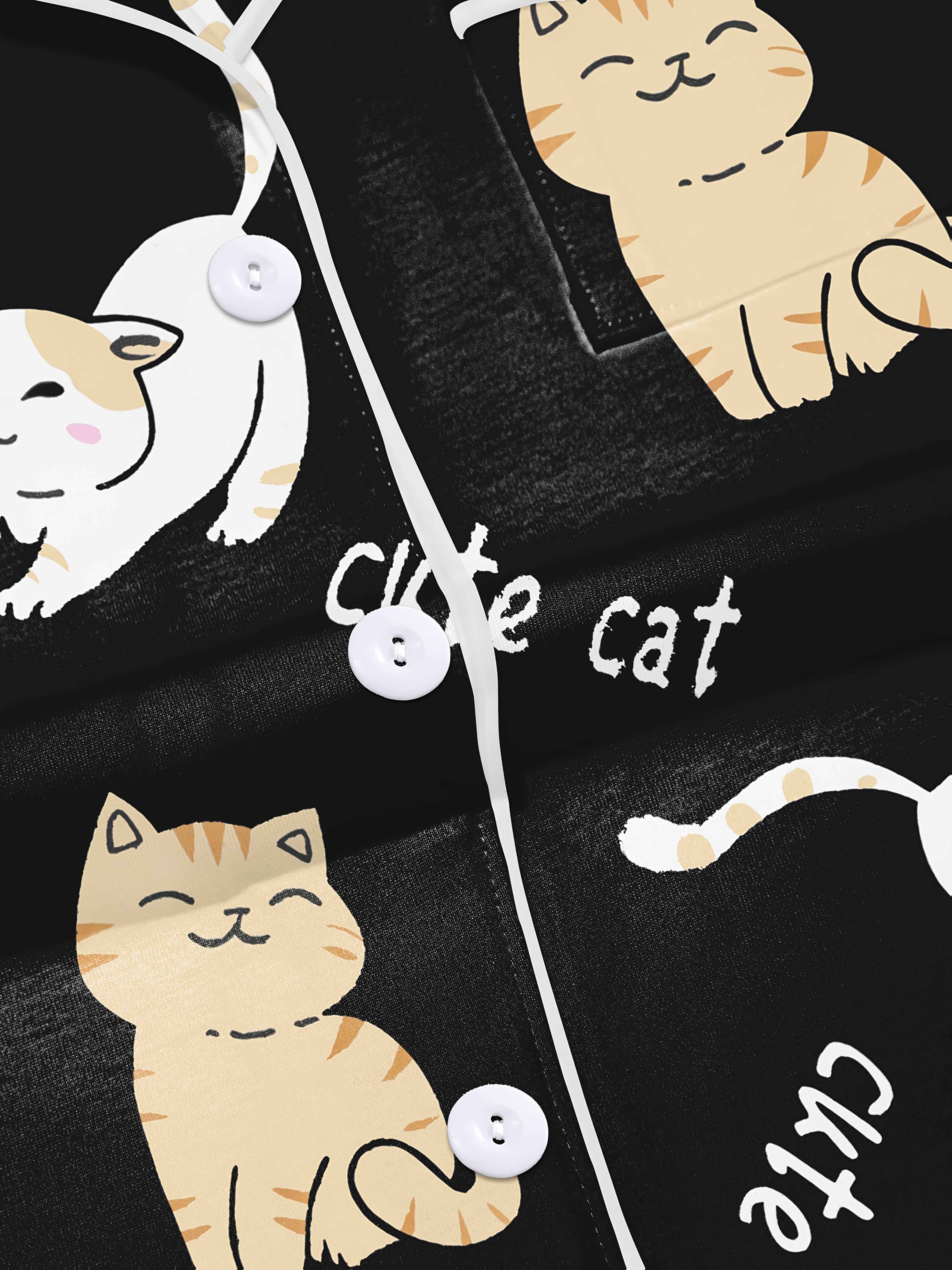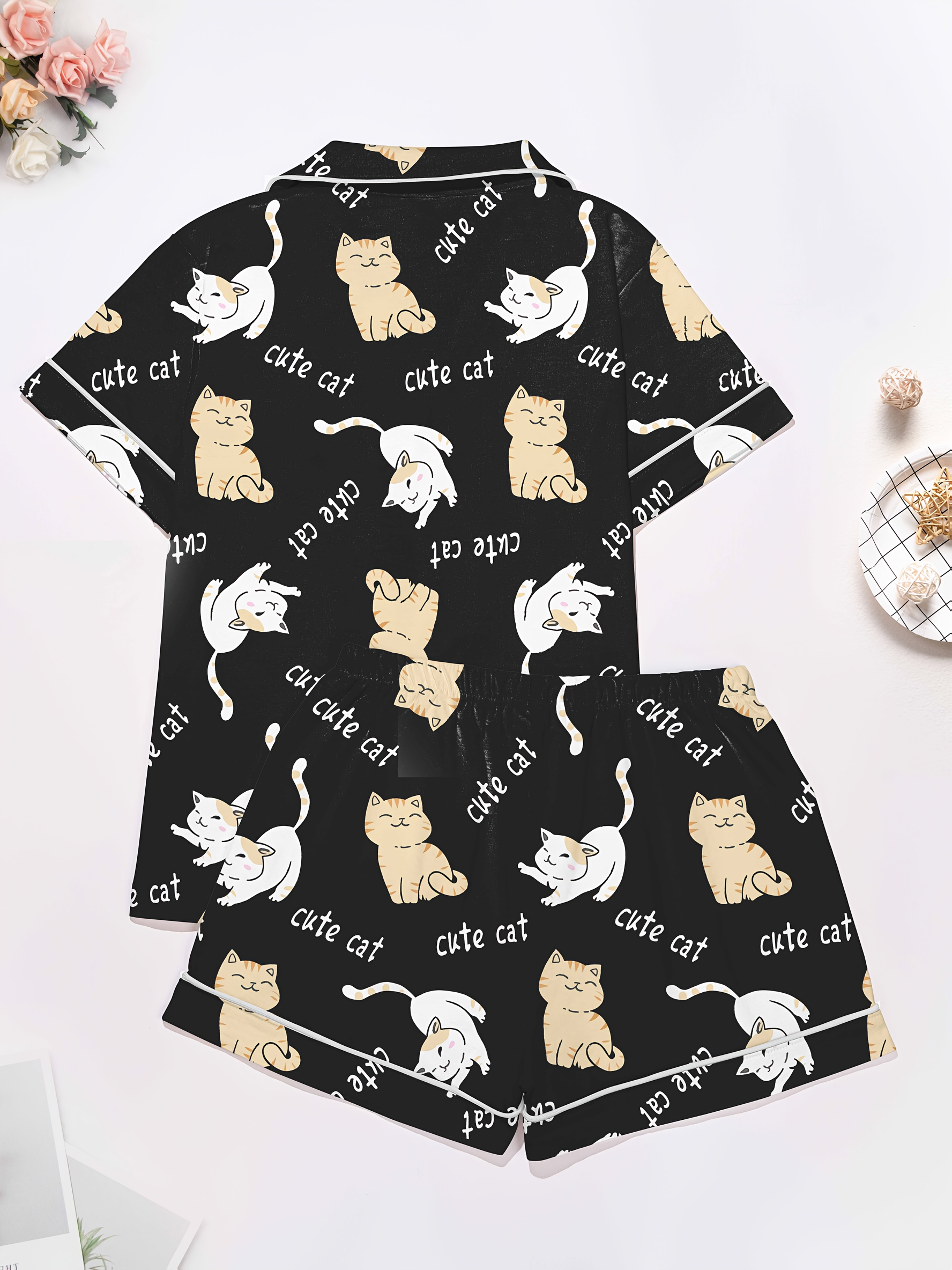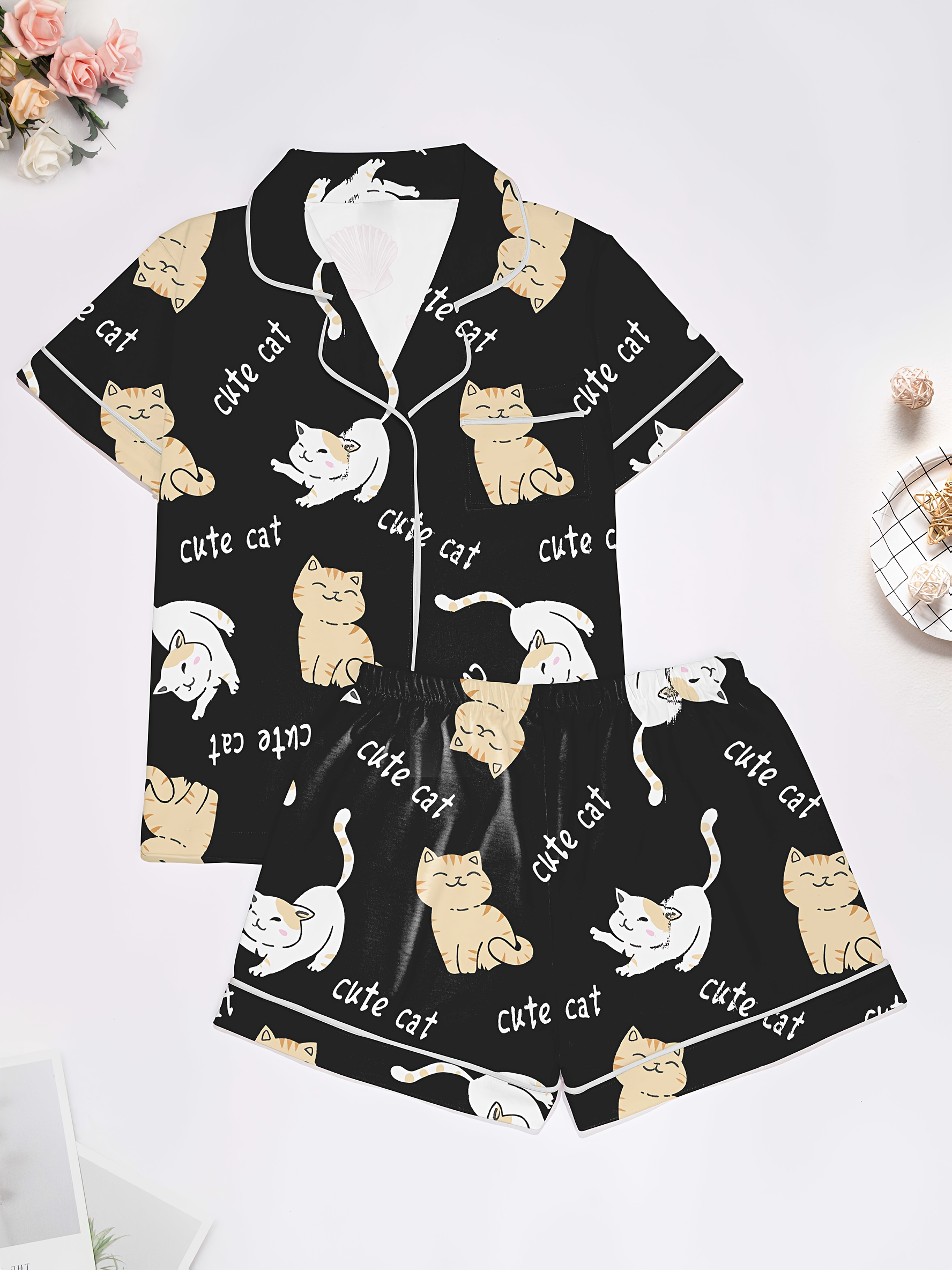 Moonlit Mews Modal Pajama Set — Silky Short‑Sleeve Button Top + Elastic‑Waist Shorts