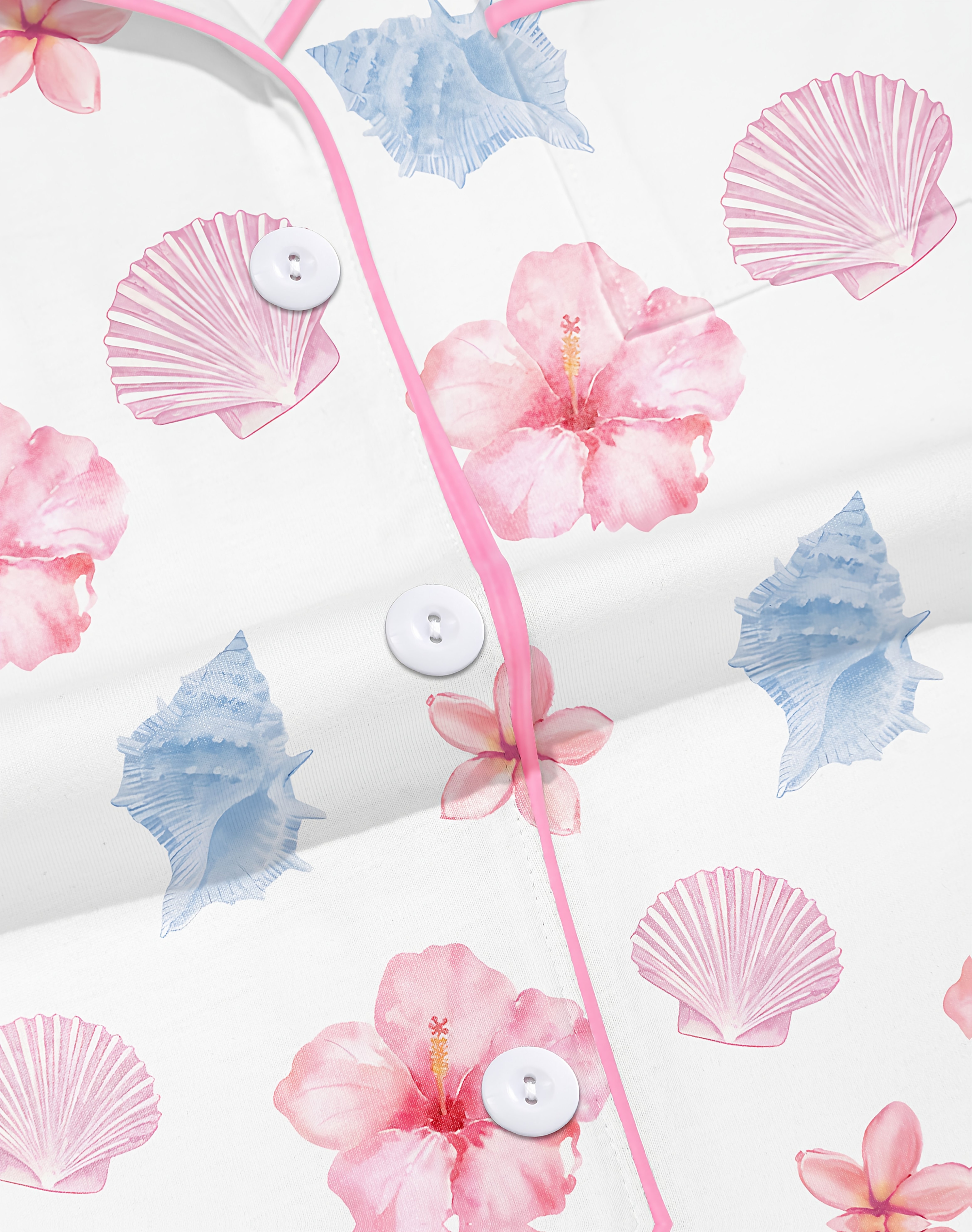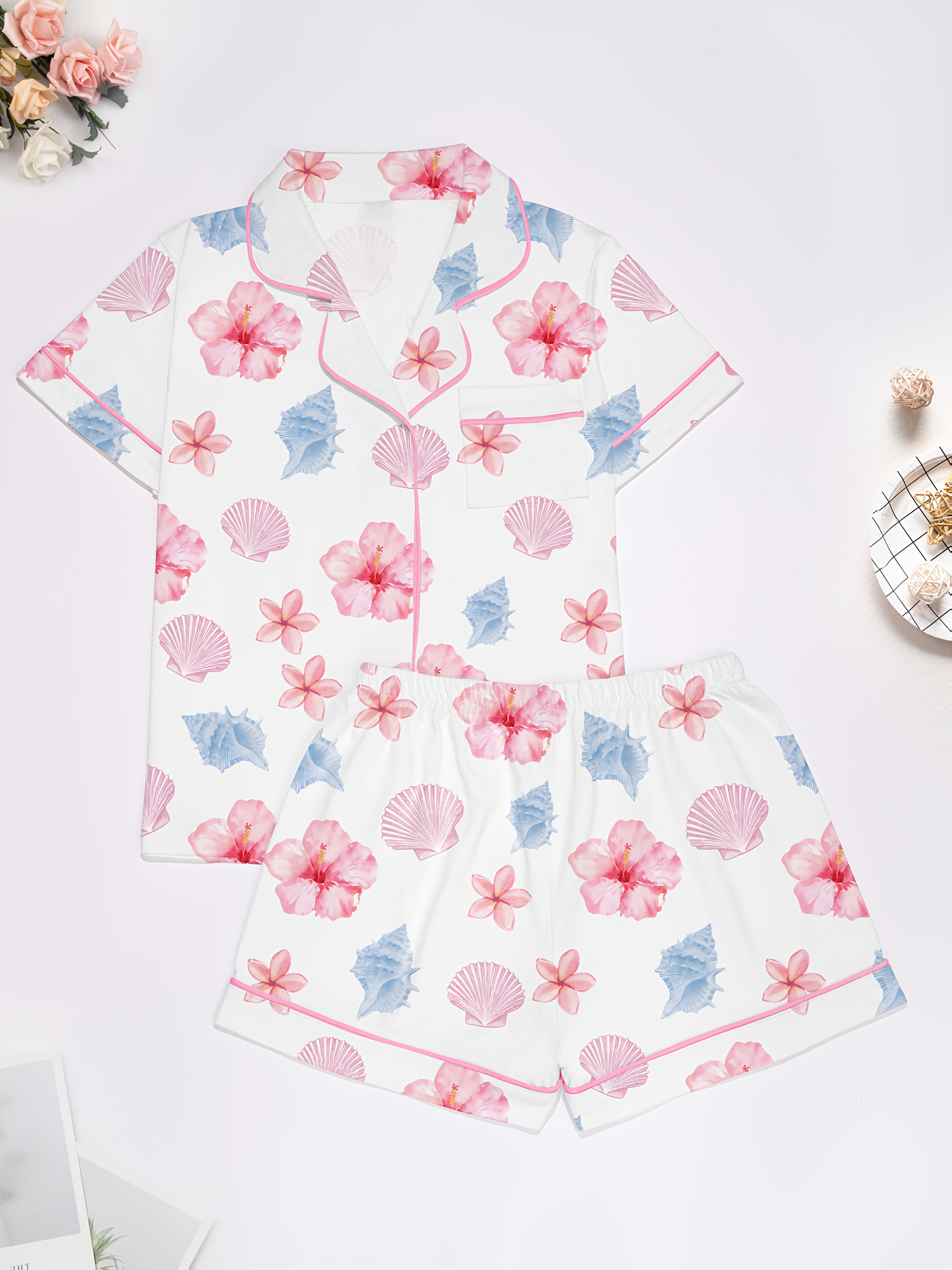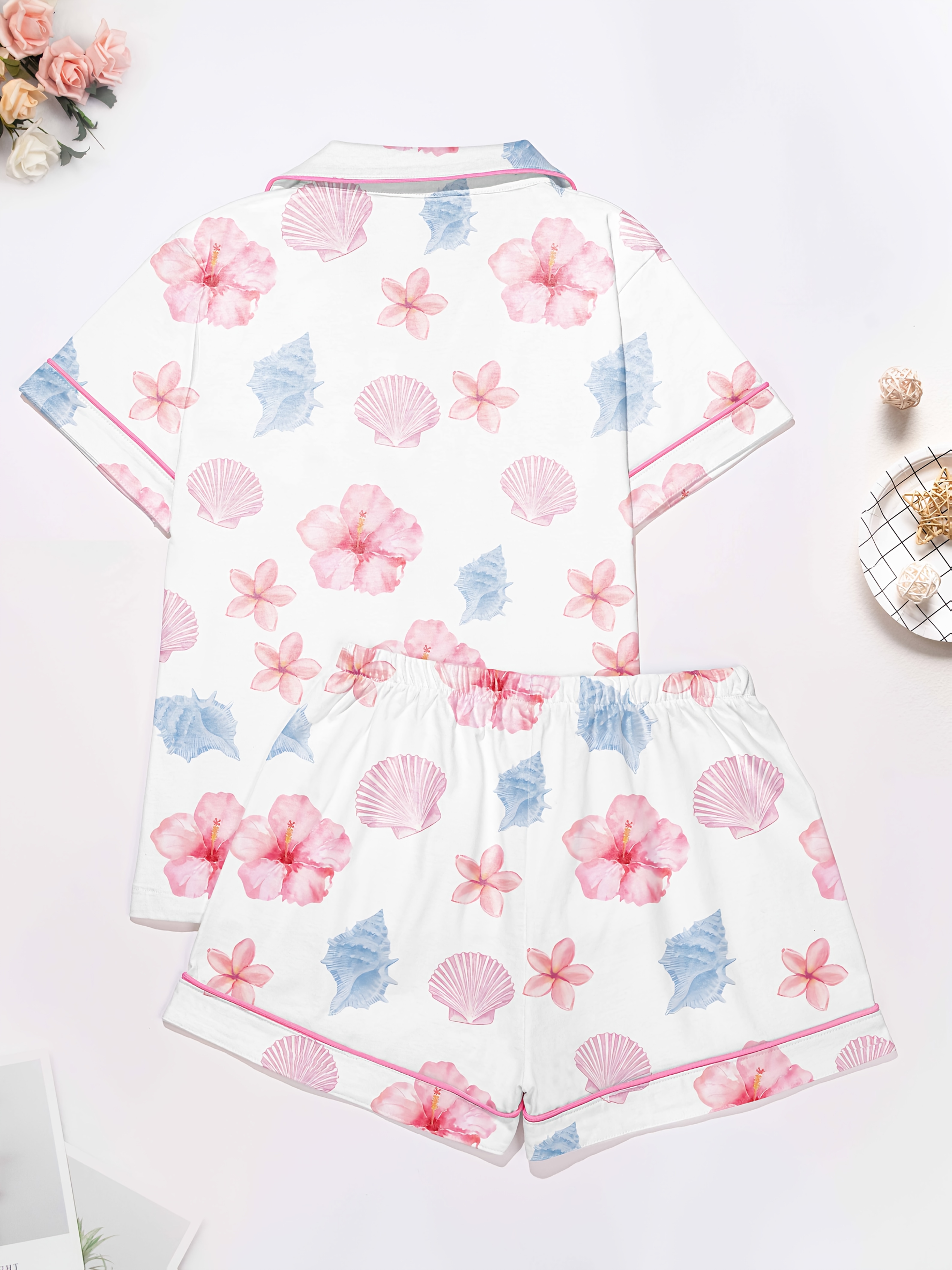 Seashell Breeze Modal Pajama Set — Silky Short‑Sleeve Button Top + Elastic‑Waist Shorts