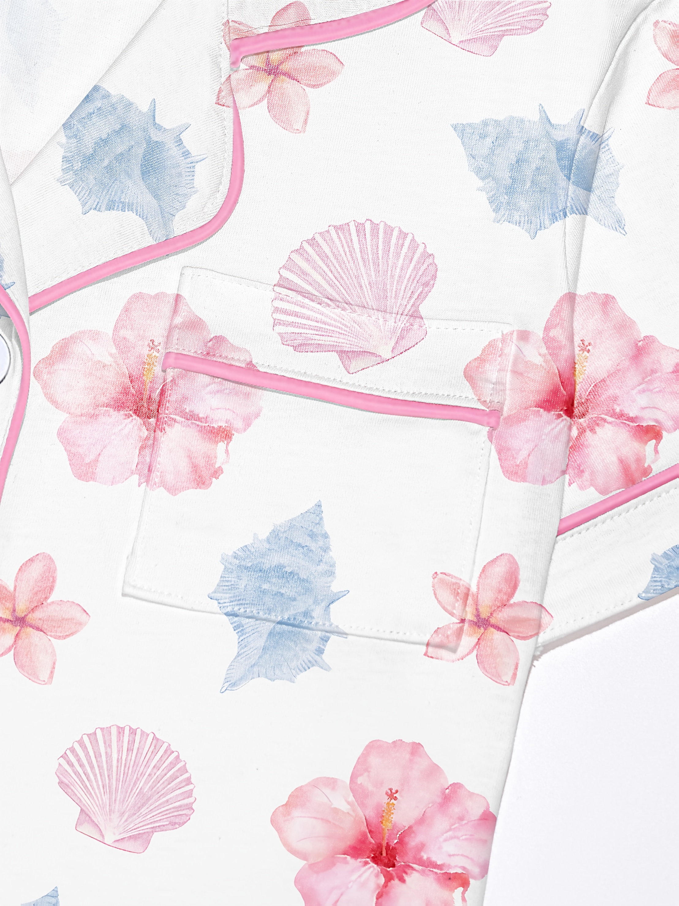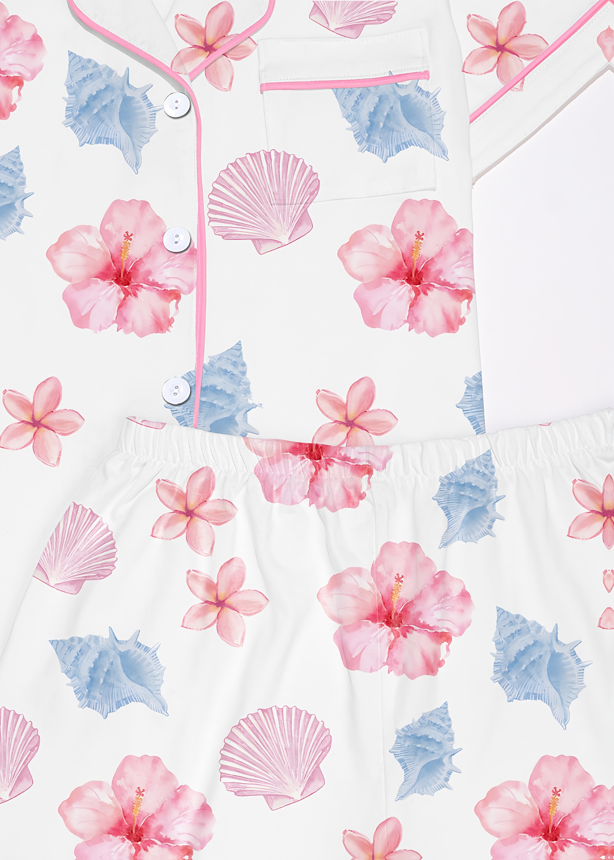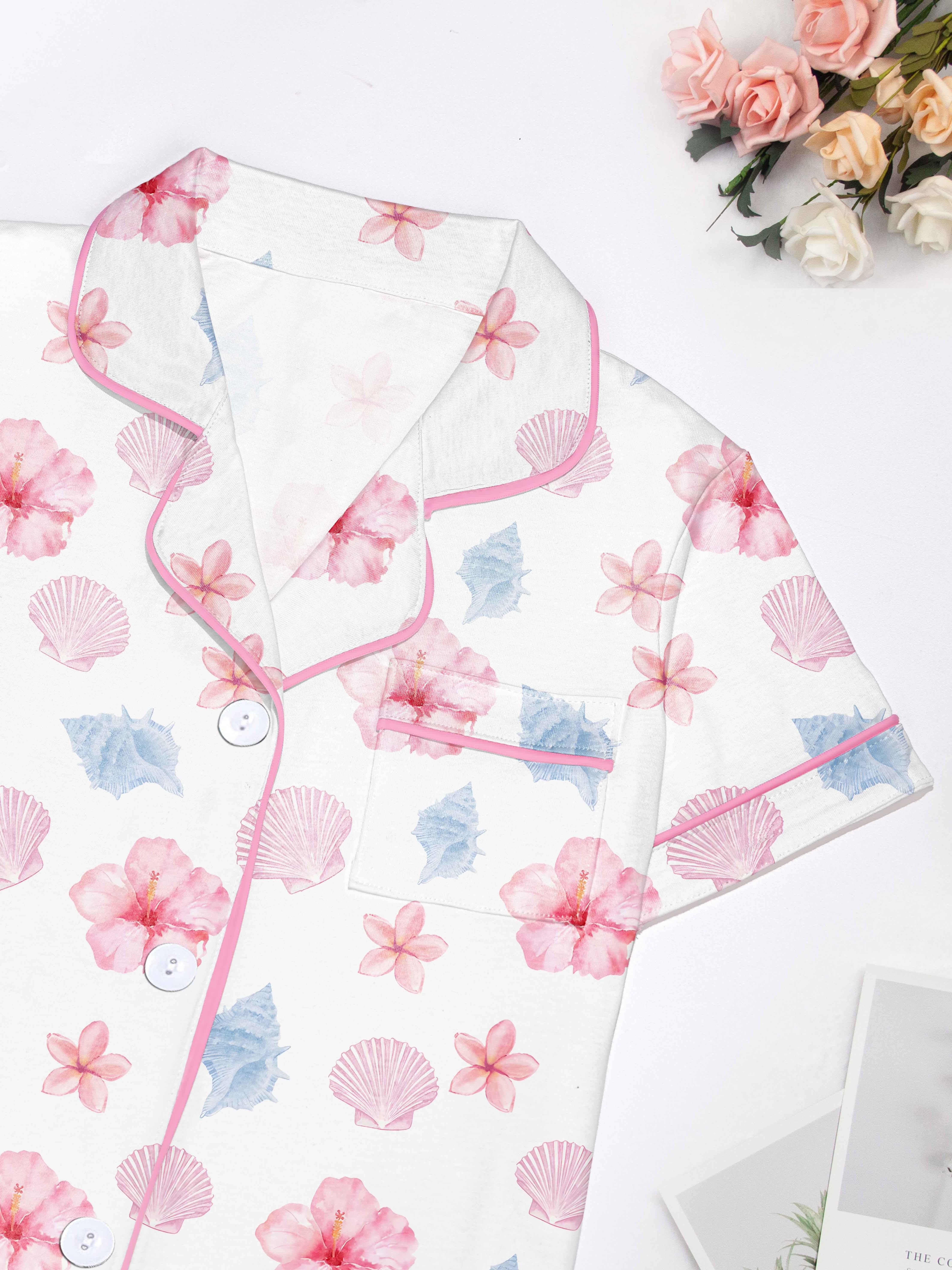 Seashell Breeze Modal Pajama Set — Silky Short‑Sleeve Button Top + Elastic‑Waist Shorts