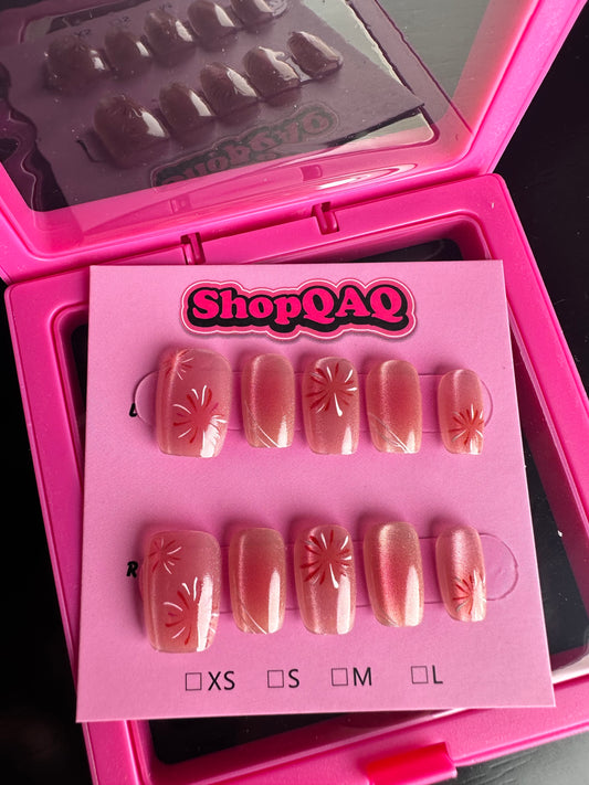Handcrafted Sunset Firework Cat Eye Press-On Nails - Radiant Light-Chasing Gel Nail Art