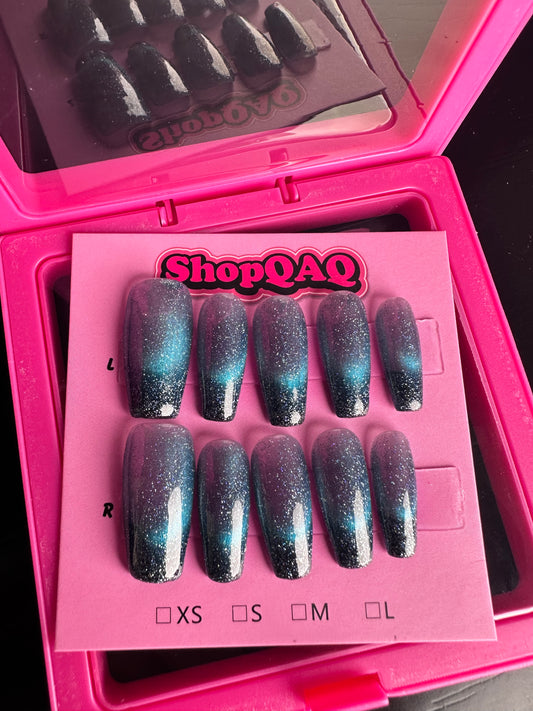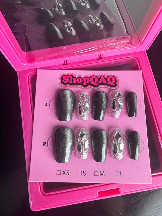 Celestial Summit" Crystal Cat Eye Press-On Nails - Unique Dark Gothic Handcrafted Gel Nail Art